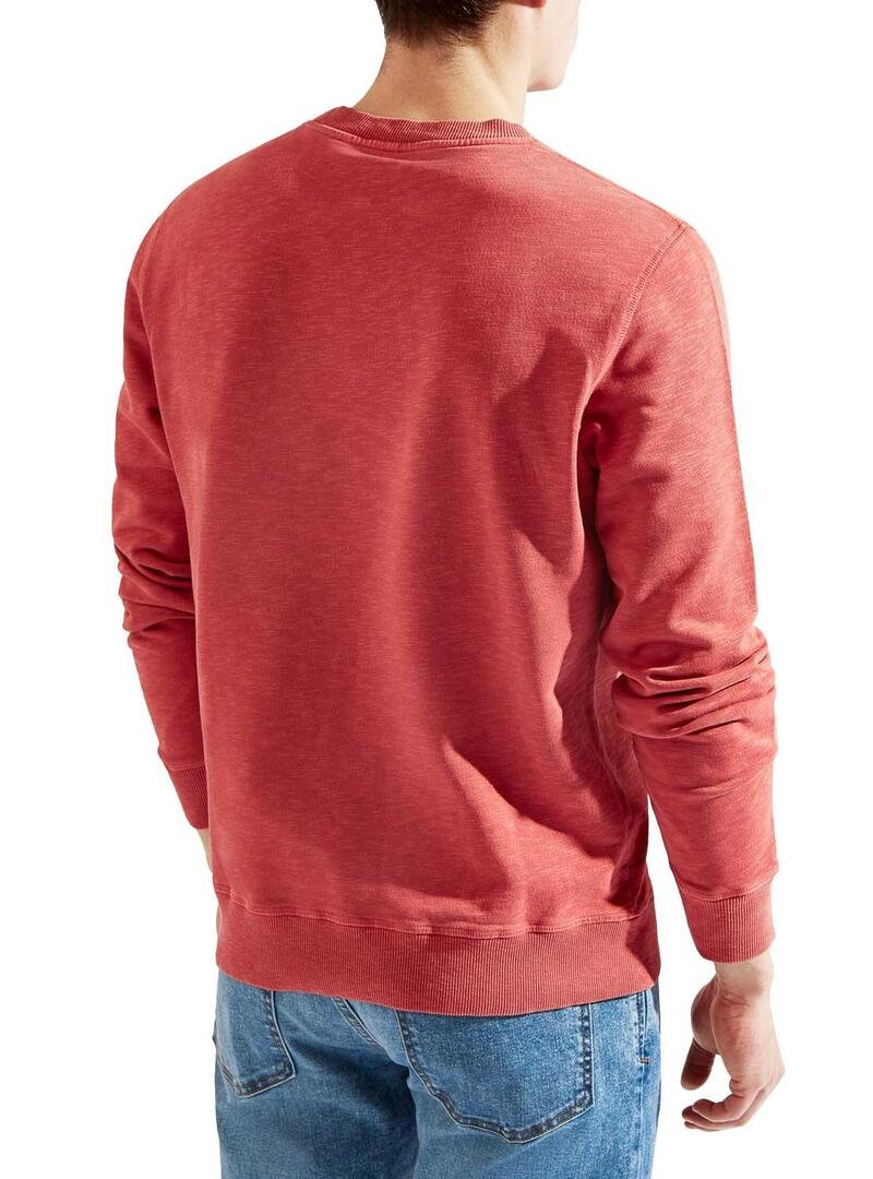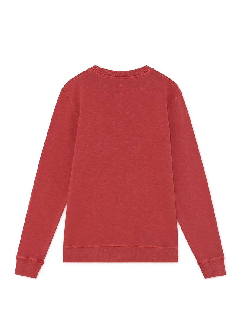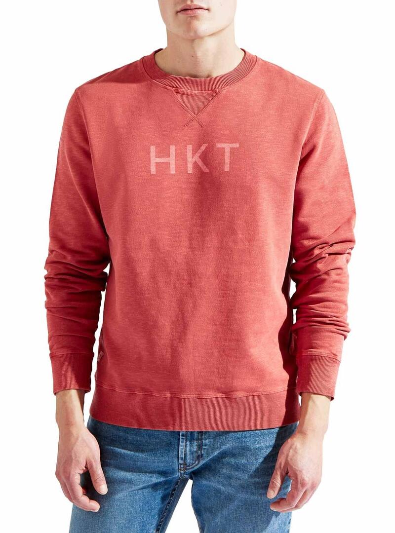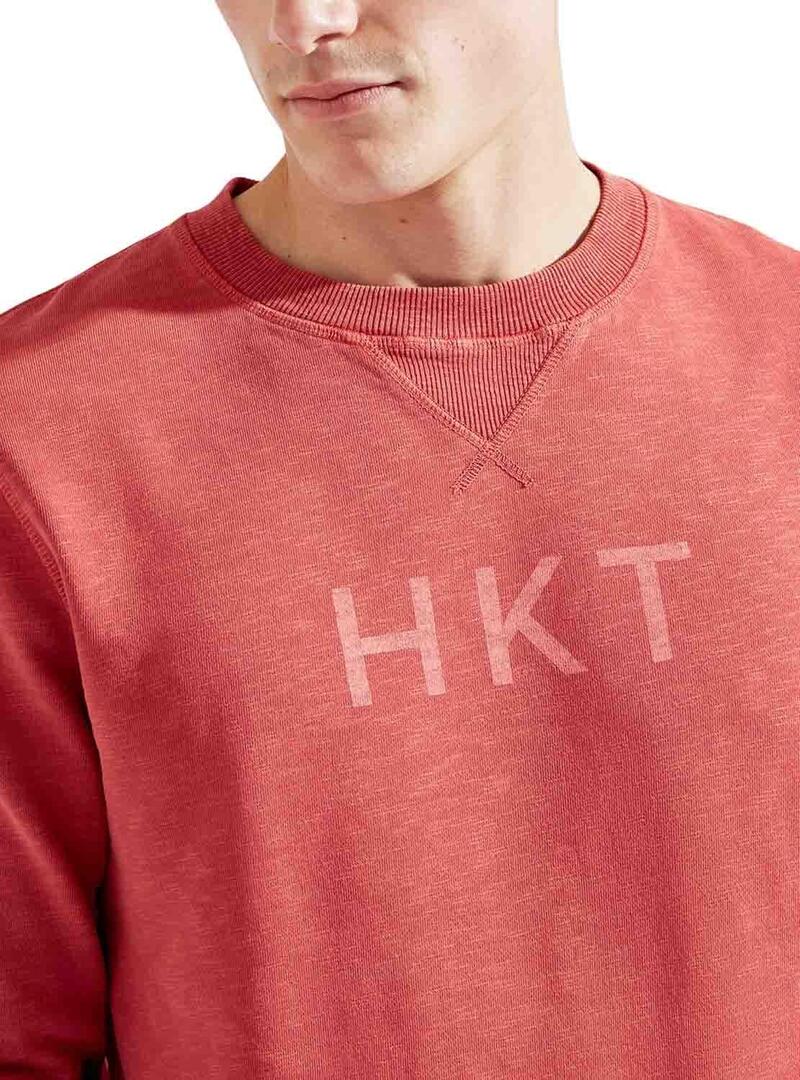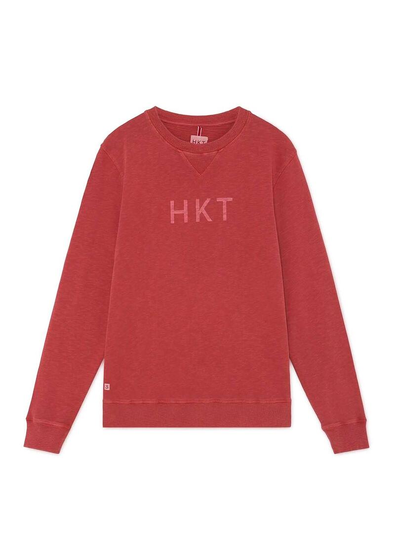 Sweat Hackett. Modelo básico. Cor vermelha Pescoço redondo. Impressão do logotipo no peito. Extremidades com nervuras. Efeito tingido.