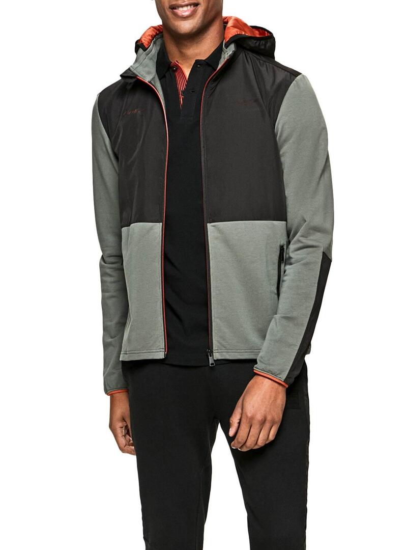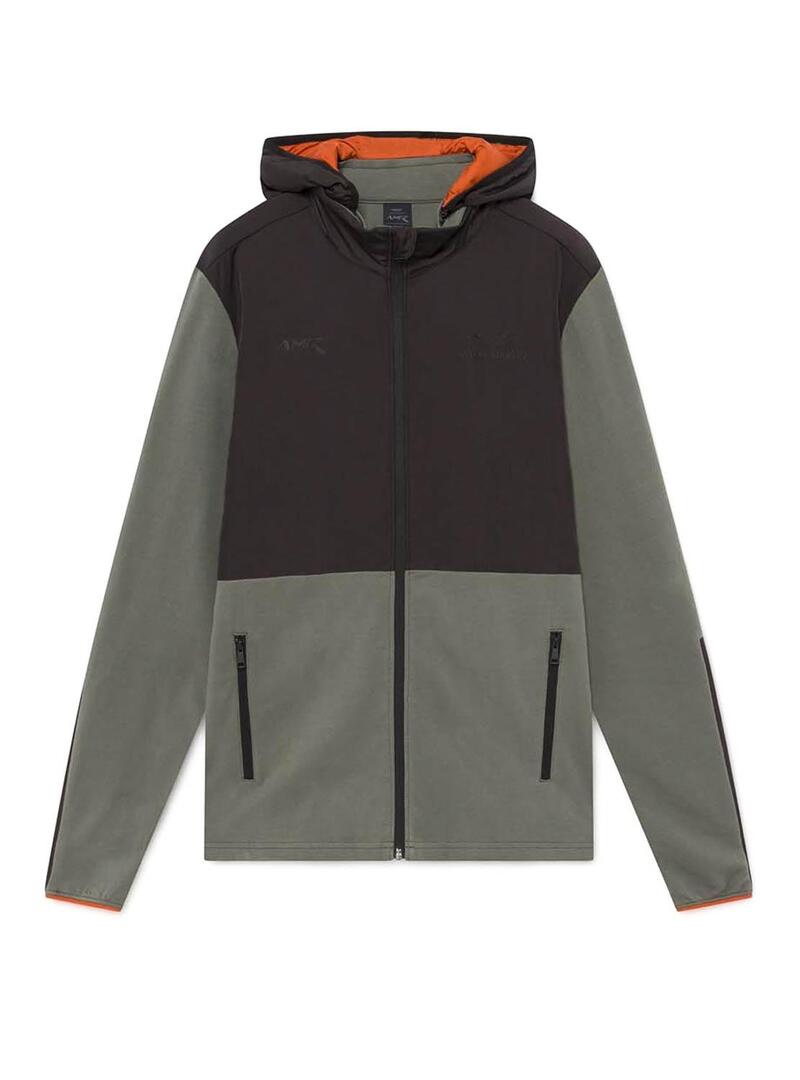 Sweat Hackett. Com capuz. Tecido combinado Pertence à coleção Aston Martin Racing. Tecido macio. fechamento do camurçaro com zíper. Bolsos com fecho. Capuz forrado a laranja.