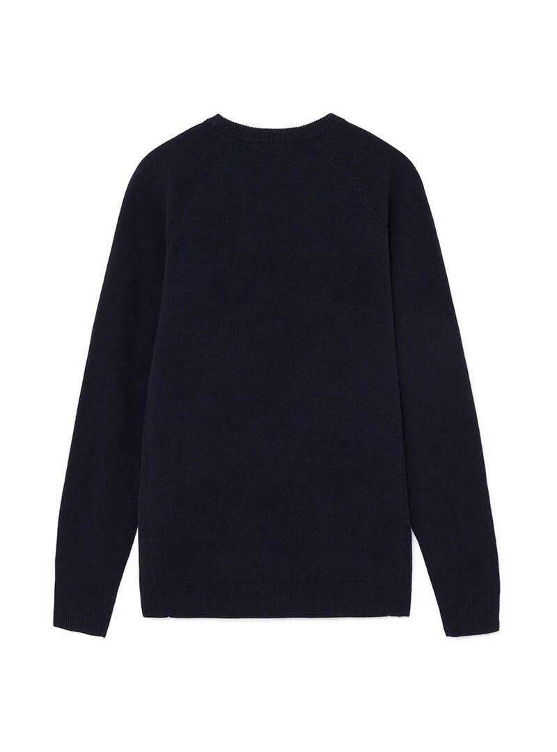 Camisola Hackett. Cor azul marinho. Pescoço redondo. Manga comprida. Patches na frente. Tecido macio. Formato regular.