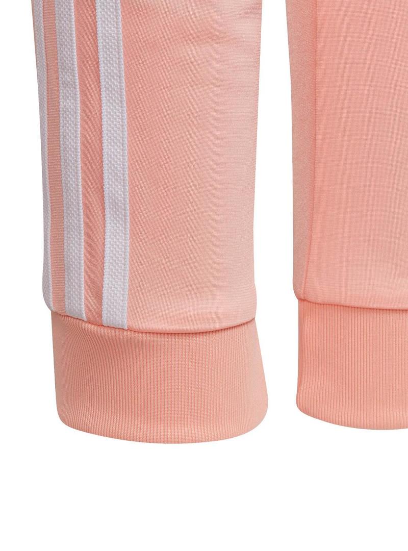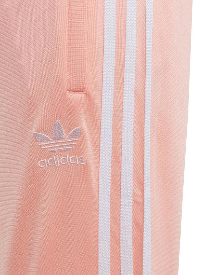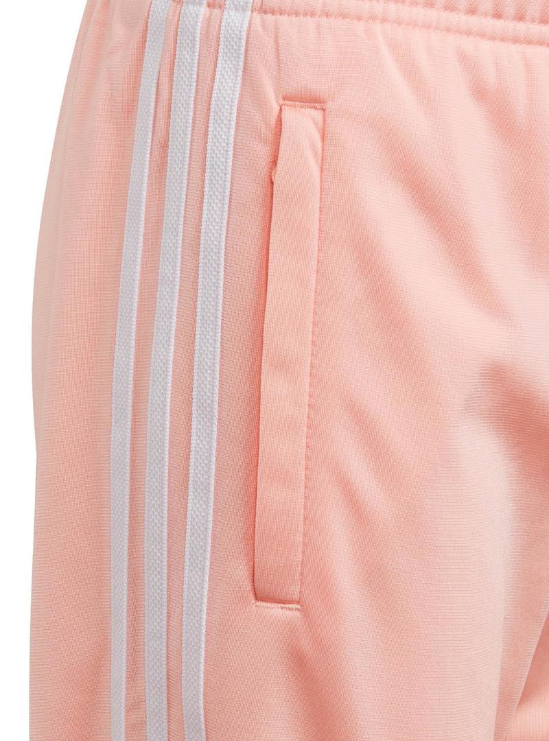Pantalon Adidas. Modelo Track. Cor rosa. Cintura elástica com cordão. Dois bolsos laterais. Logotipo bordado. Regular fit Bainha elástica. Três faixas laterais em branco.