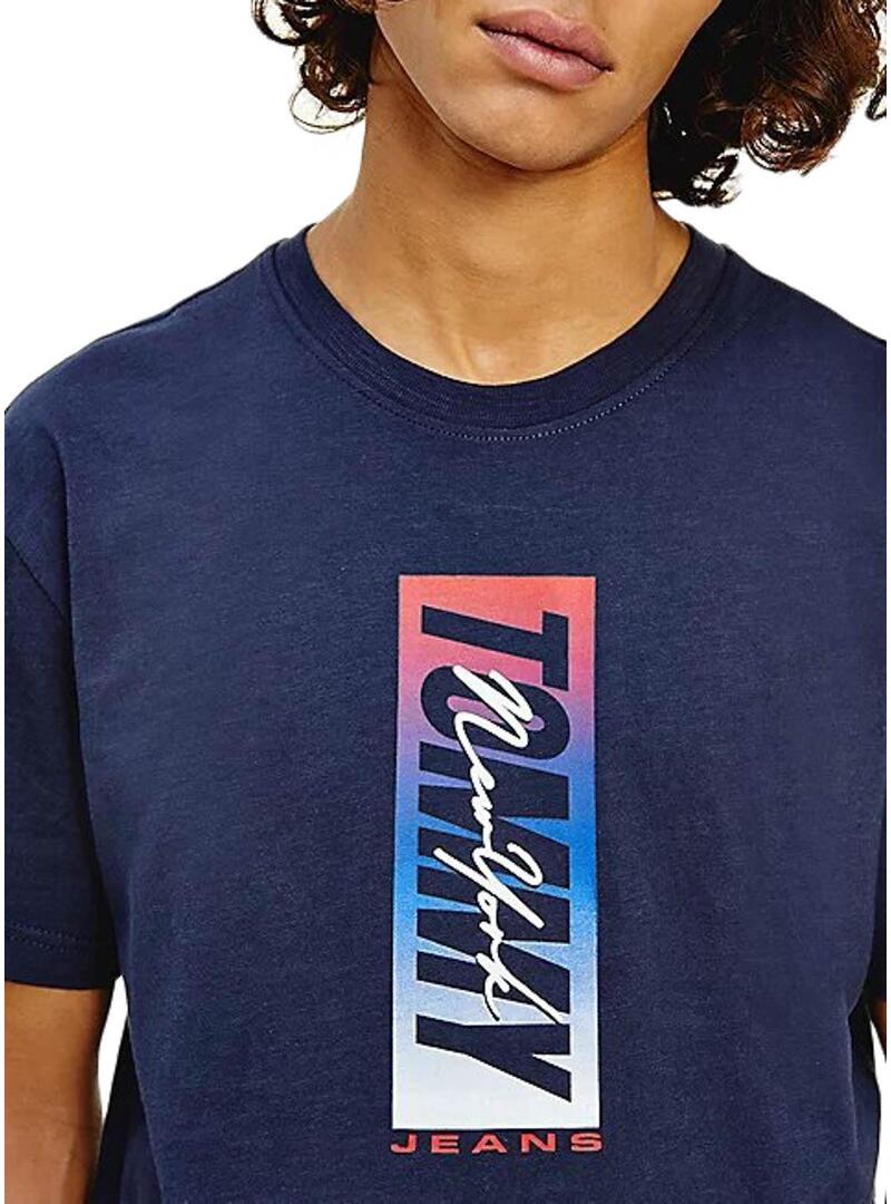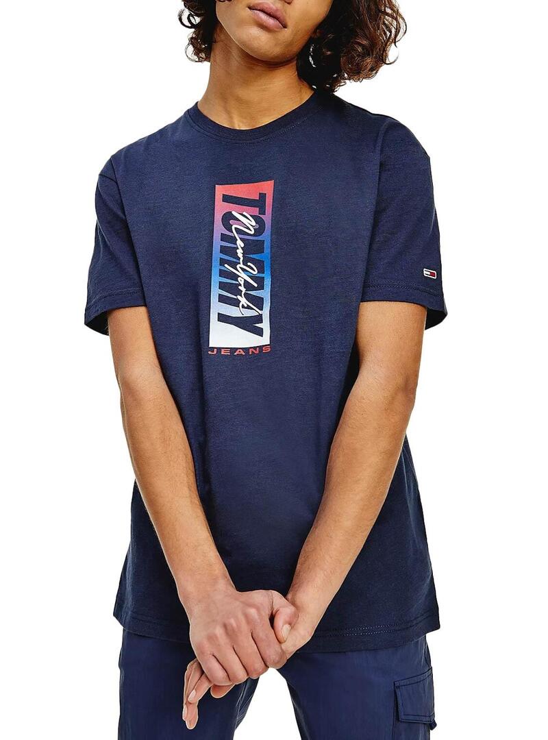 T-Shirt Tommy Jeans Vertical Front Logo Azul Marinho