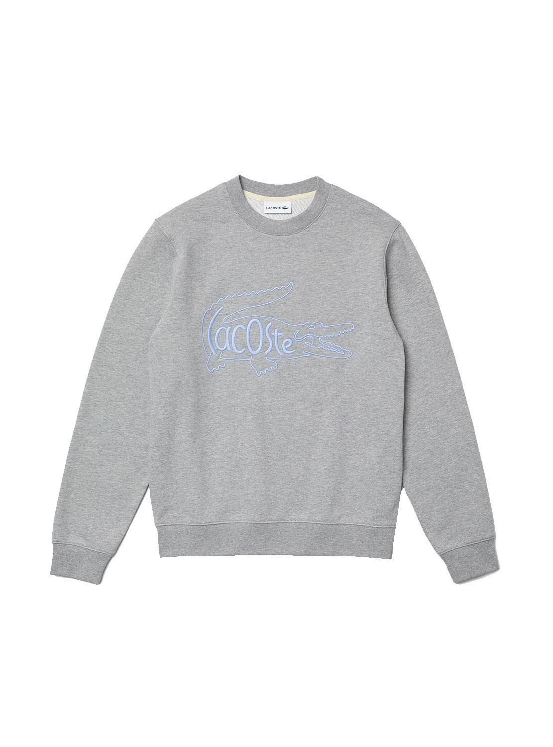 Sweat Lacoste Logo Bordado Cinza para Homem