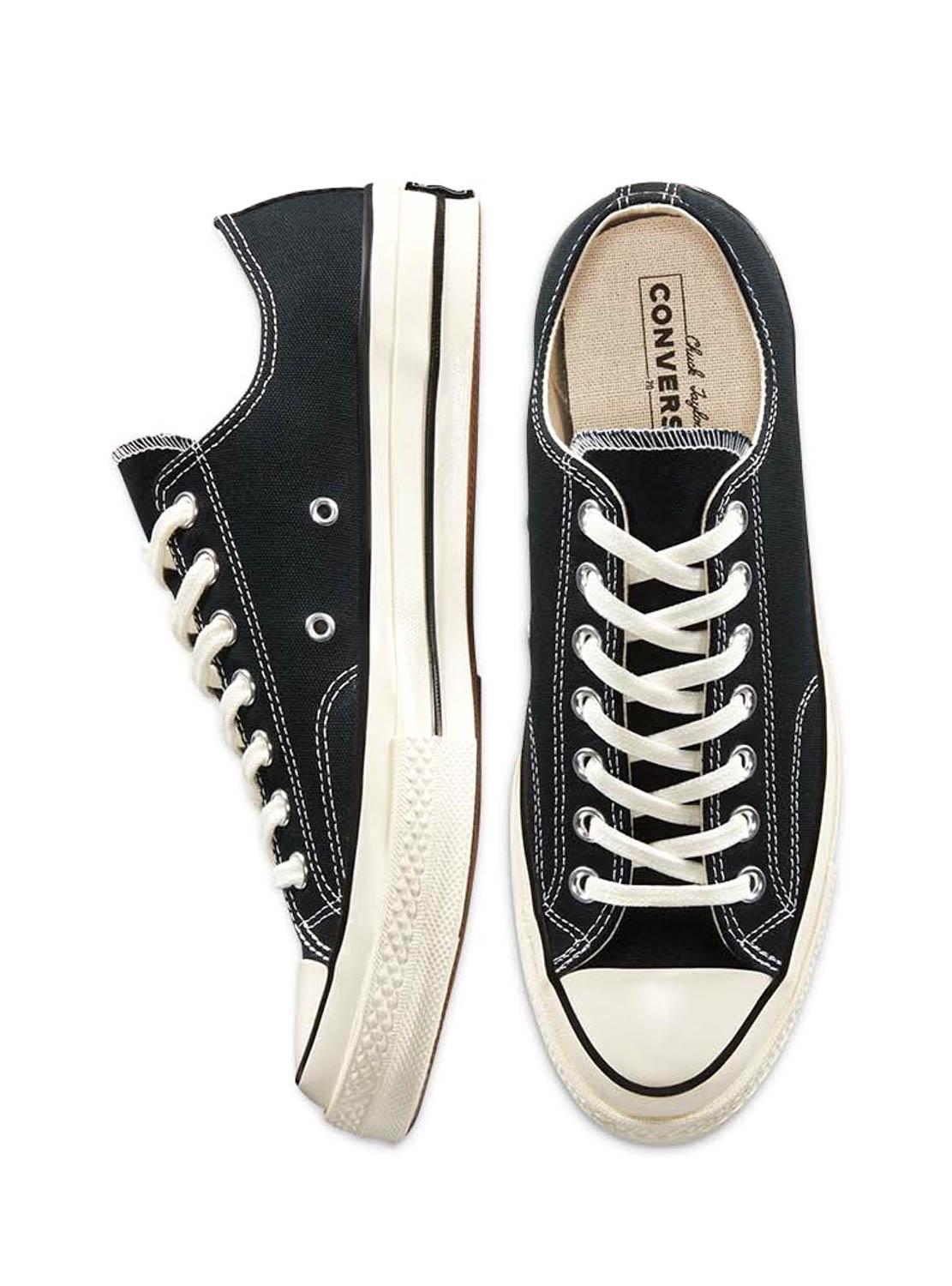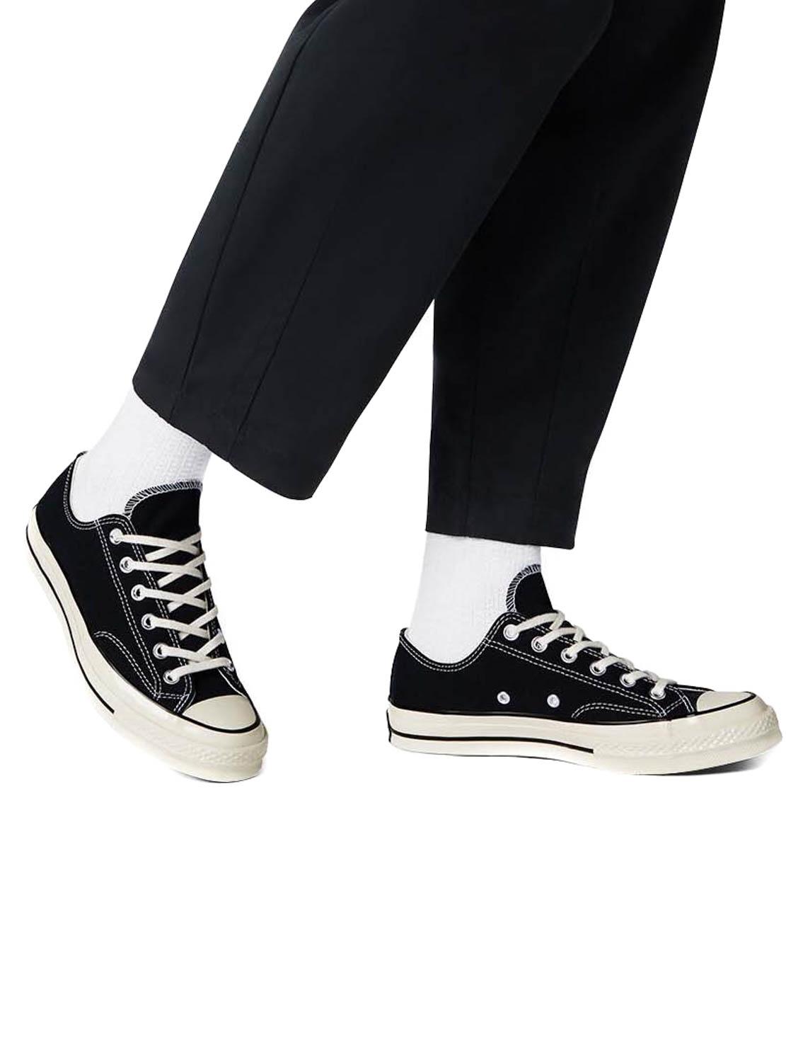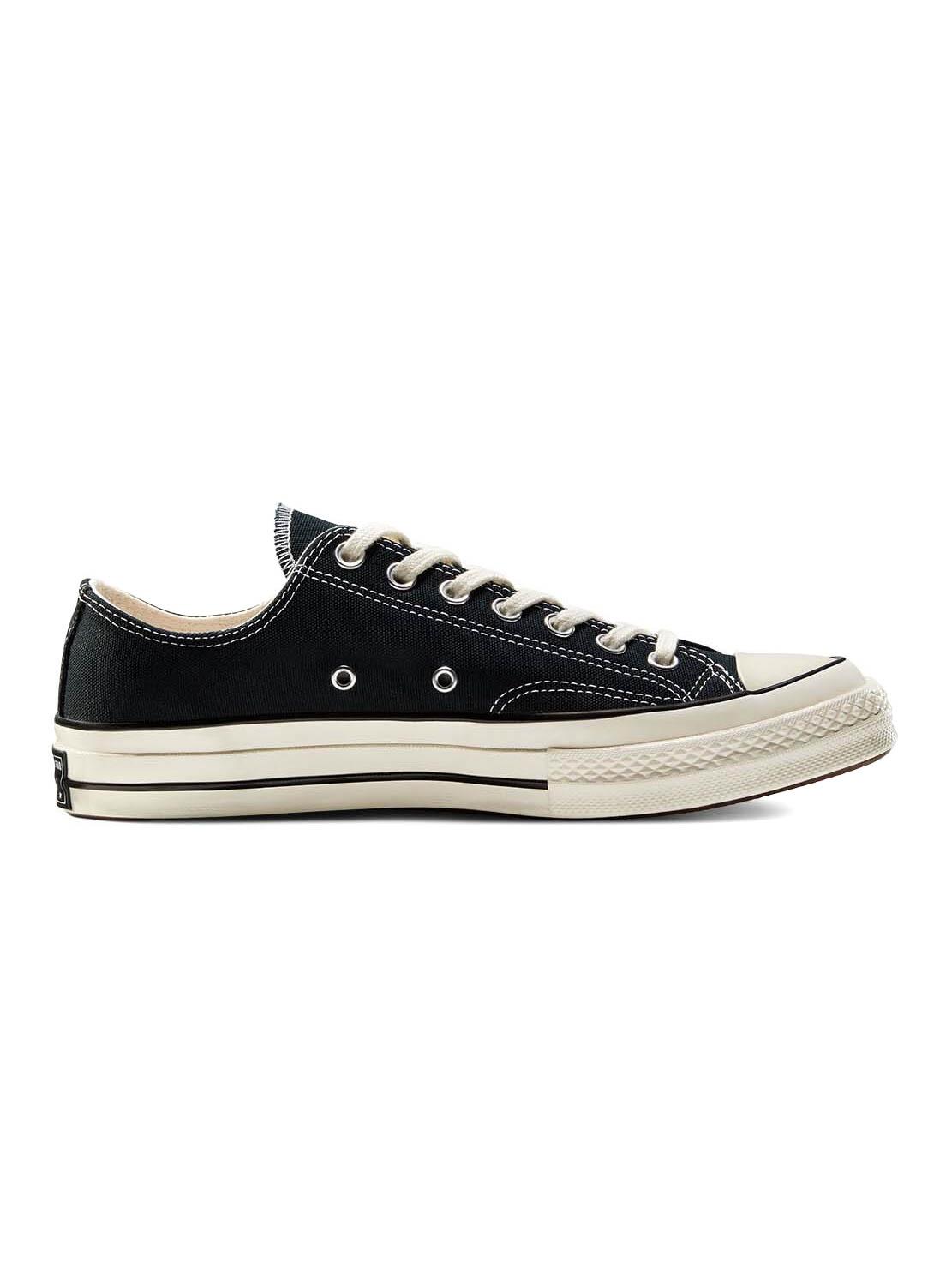 Sapatilhas Converse. Modelo Chuck 70. Cor preta. Fecho com cordões. Parte superior em tela de alta qualidade. Palmilha Ortholite. Costuras na língua.