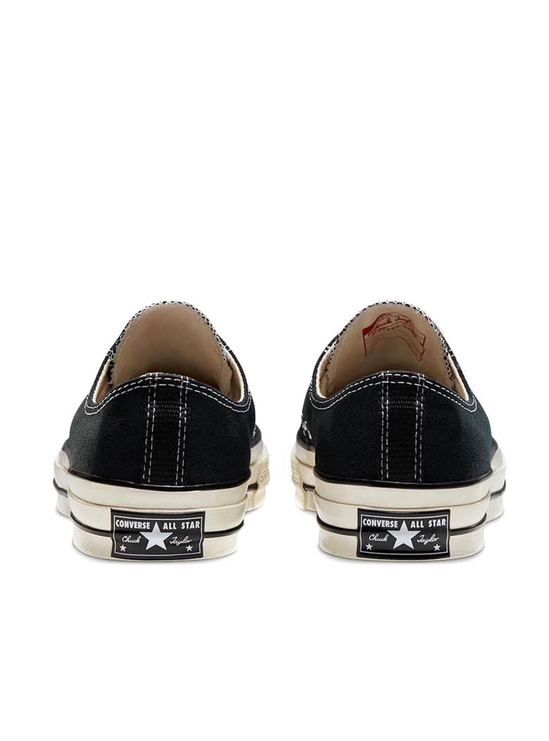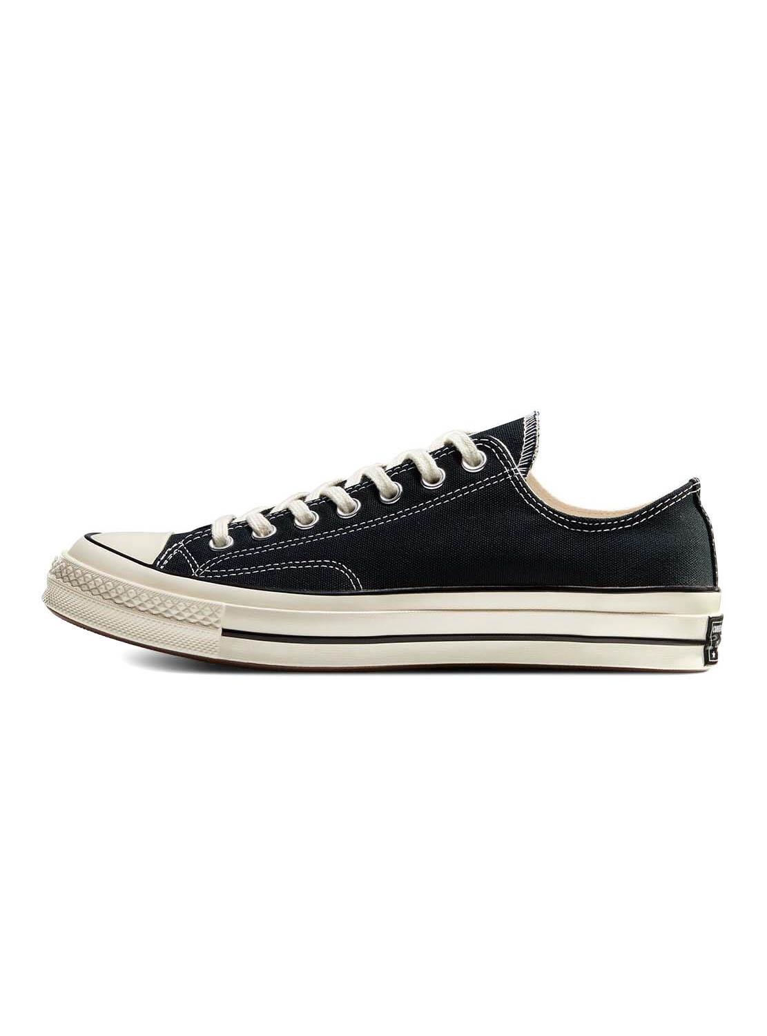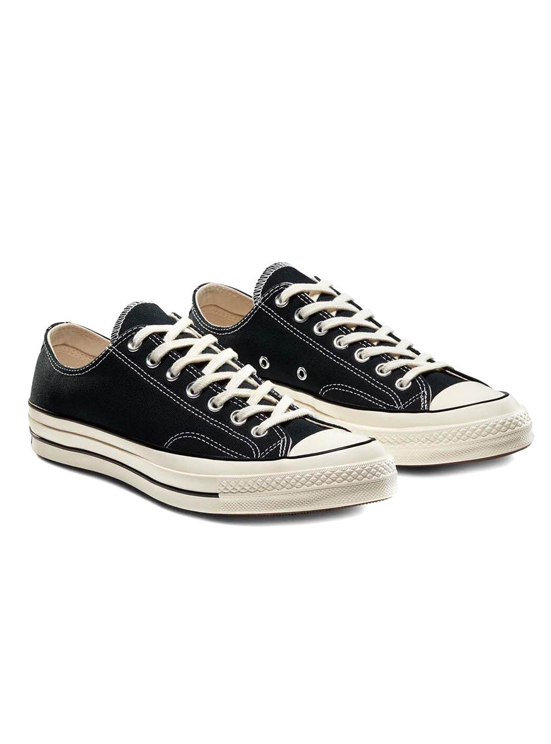 Sapatilhas Converse. Modelo Chuck 70. Cor preta. Fecho com cordões. Parte superior em tela de alta qualidade. Palmilha Ortholite. Costuras na língua.
