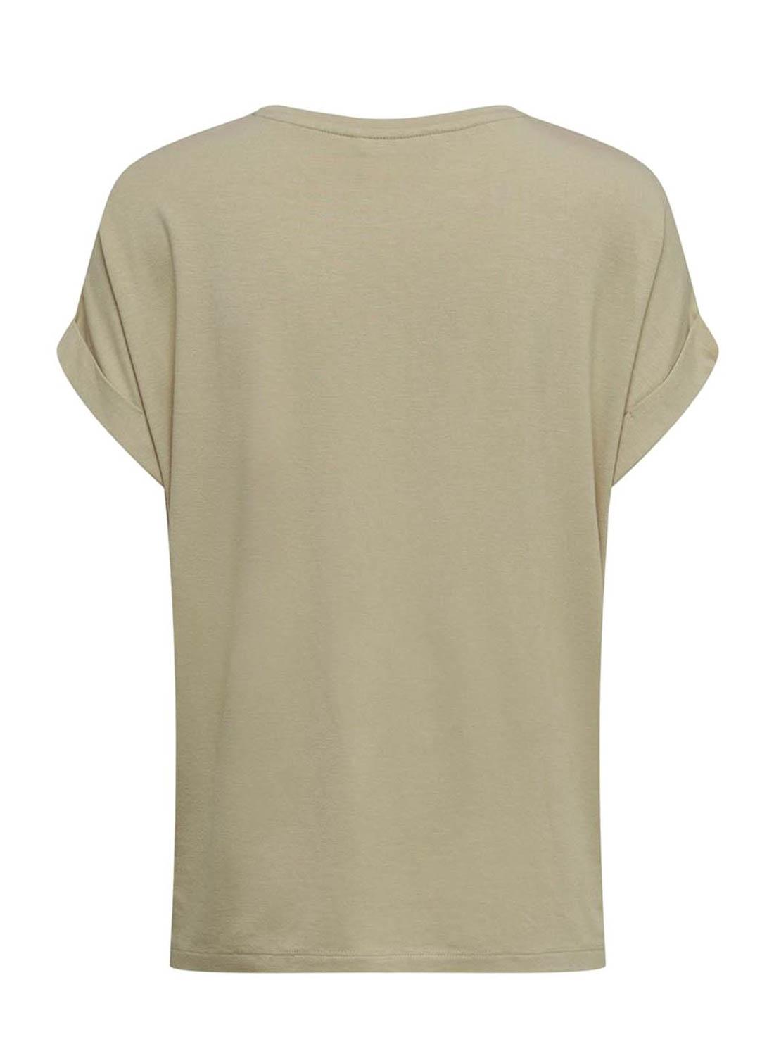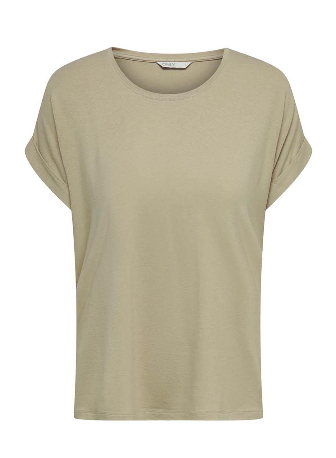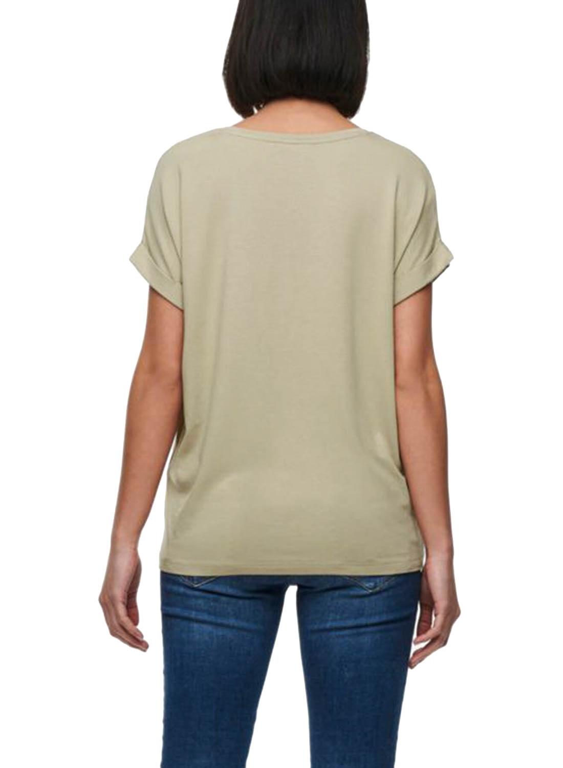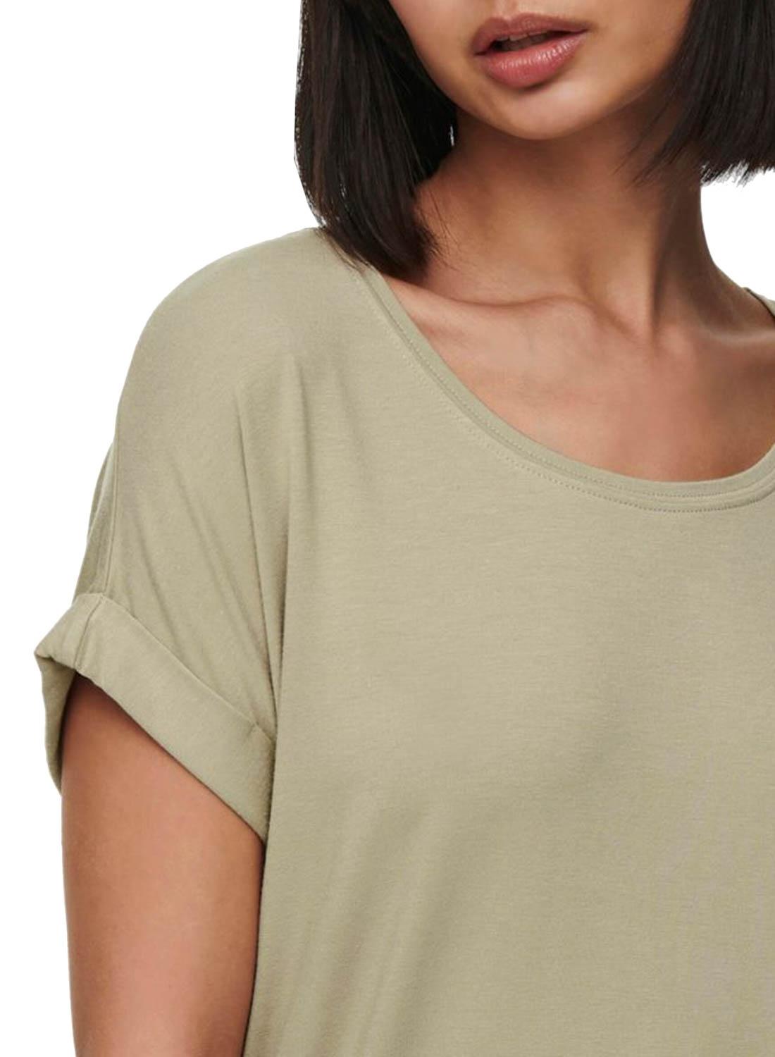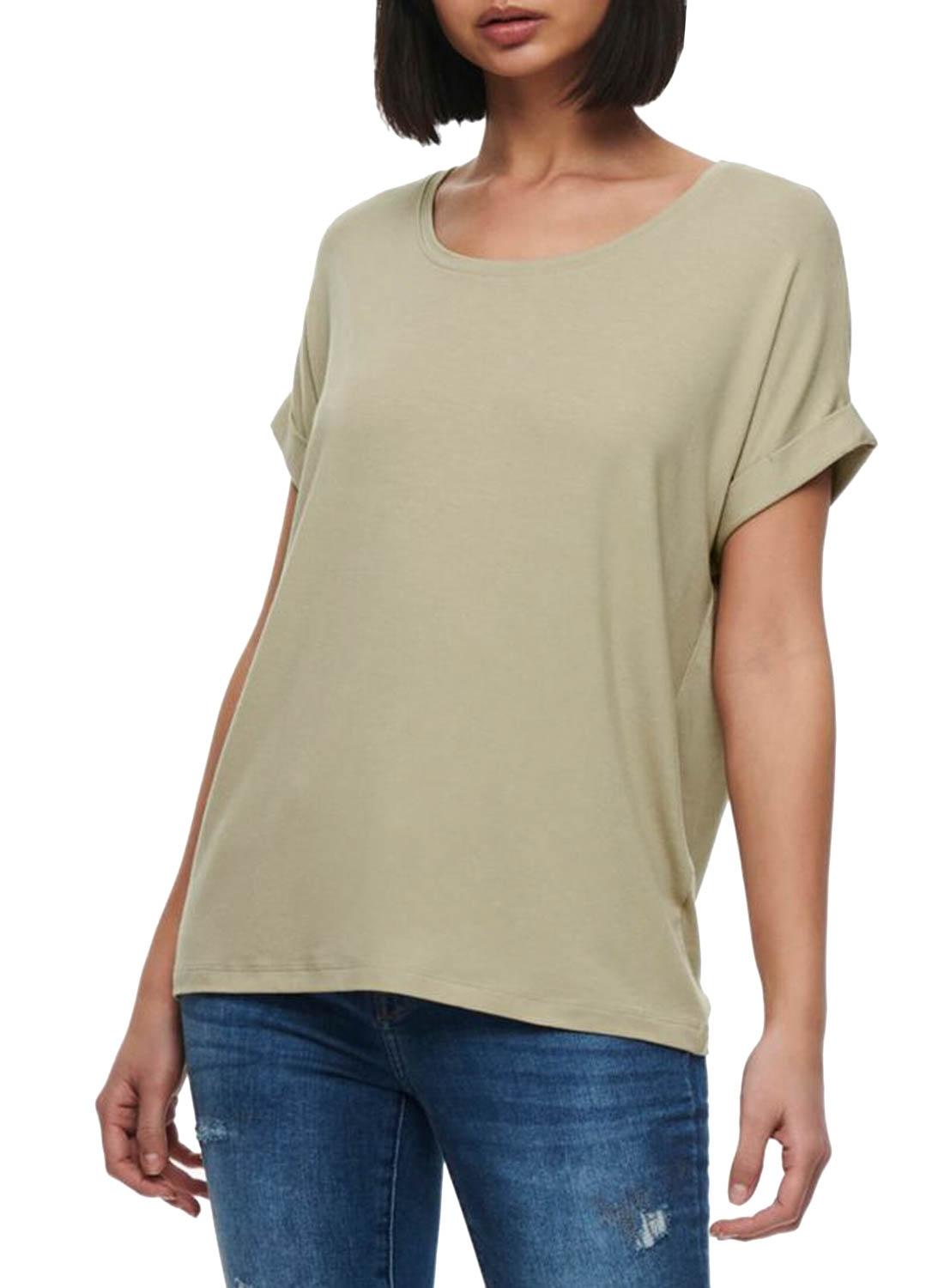 T-Shirt Only. Modelo Moster. Cor verde claro. Gola redonda elástica. Ajuste solto. Mangas dobradas. A modelo usa um tamanho S e tem 1,76 cm de altura.
