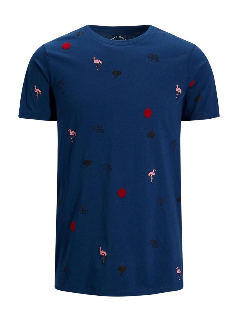 T- Shirt Jack and Jones. Modelo Jorconvo. Cor marinha Manga curta. Pescoço redondo. Slim fit Estampado com várias ilustrações em toda a camisa. Aberturas laterais. Tecido de algodão confortável.