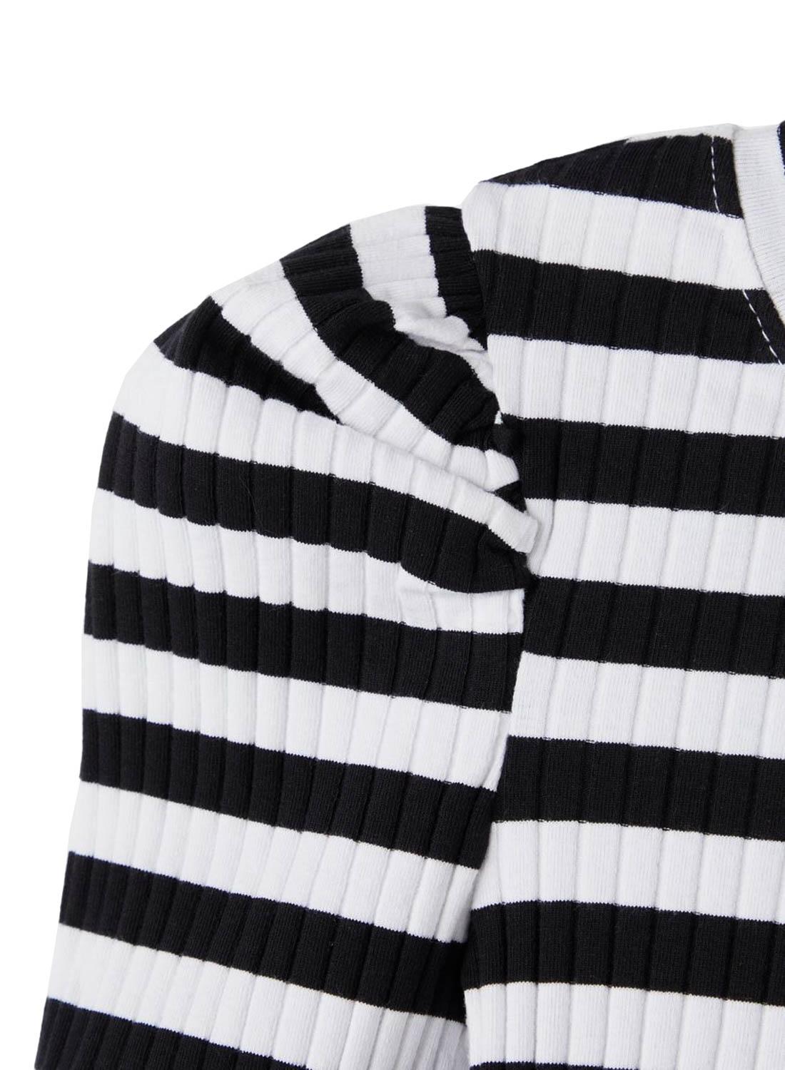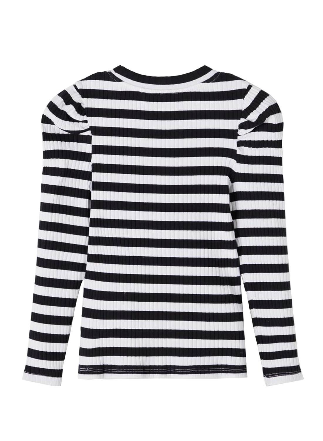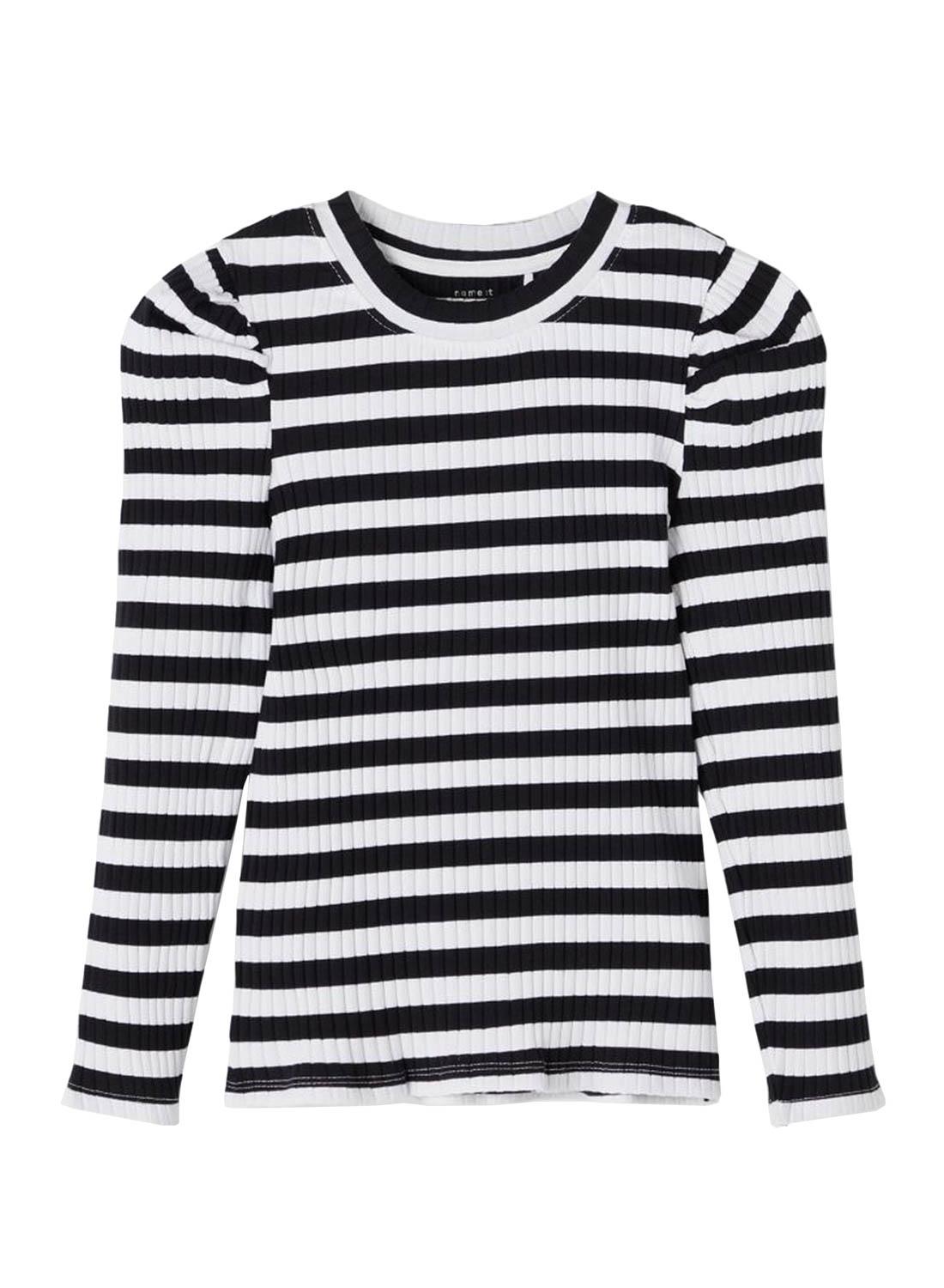 T-Shirt Name It. Modelo Namilla. Cor branca. Manga comprida. Pescoço redondo. A Listras. Regular fit.