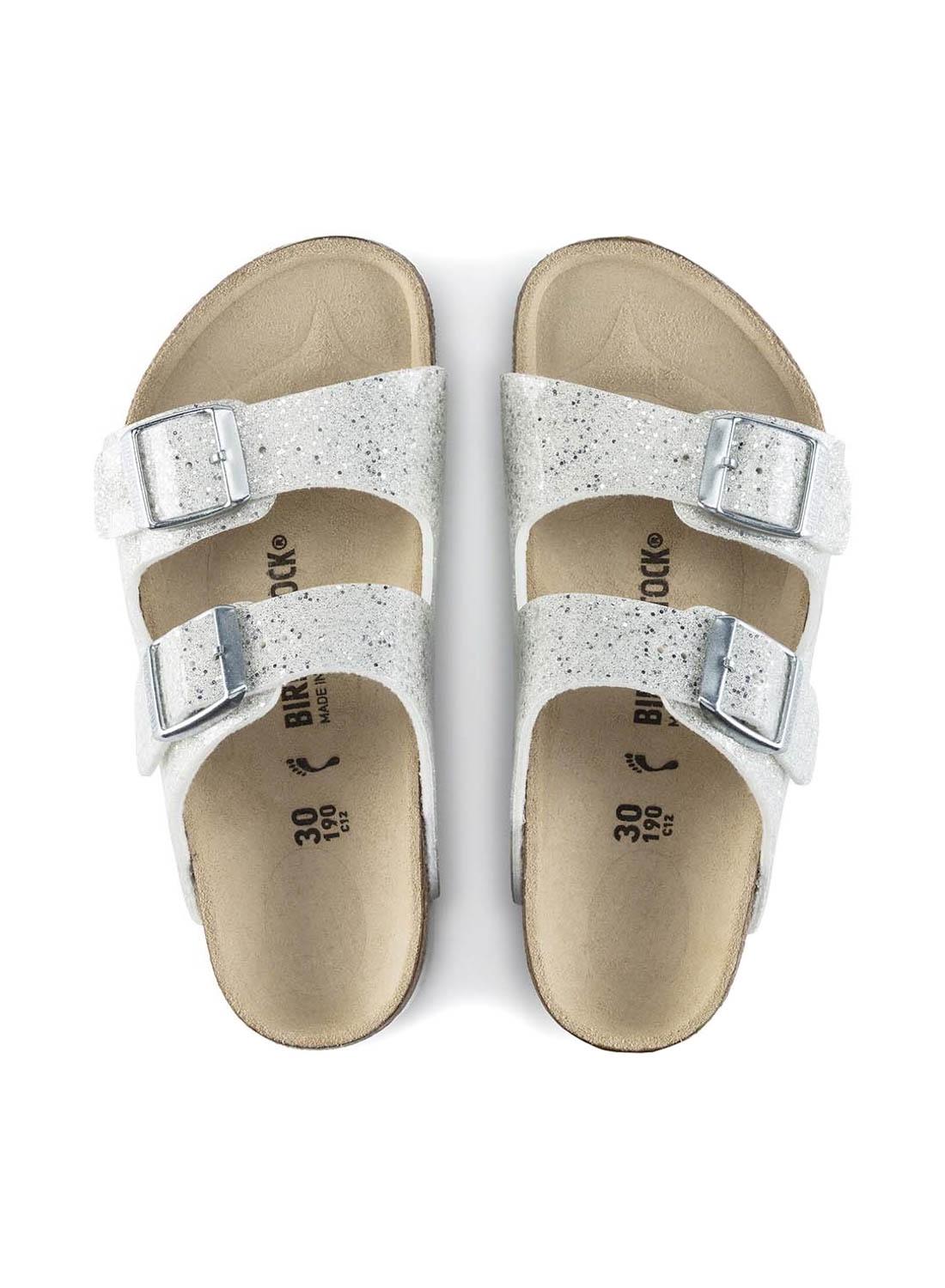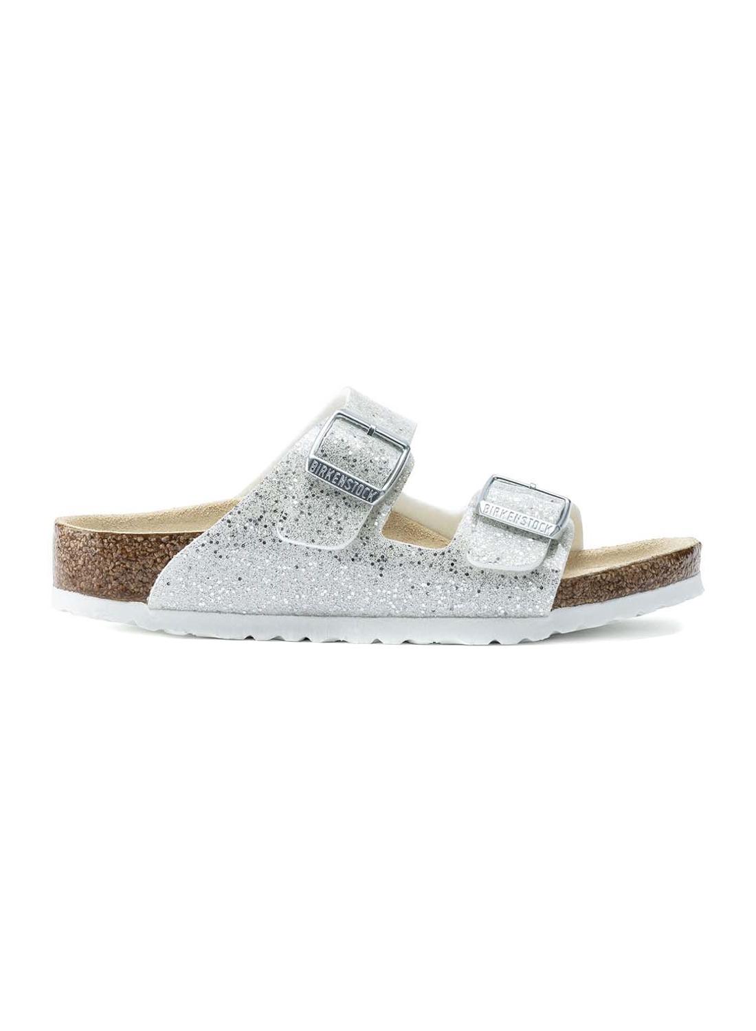 Sandálias Birkenstock Arizona prateadas para menina.