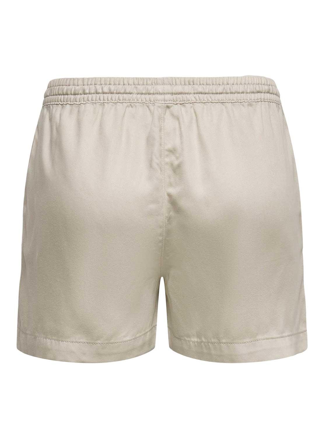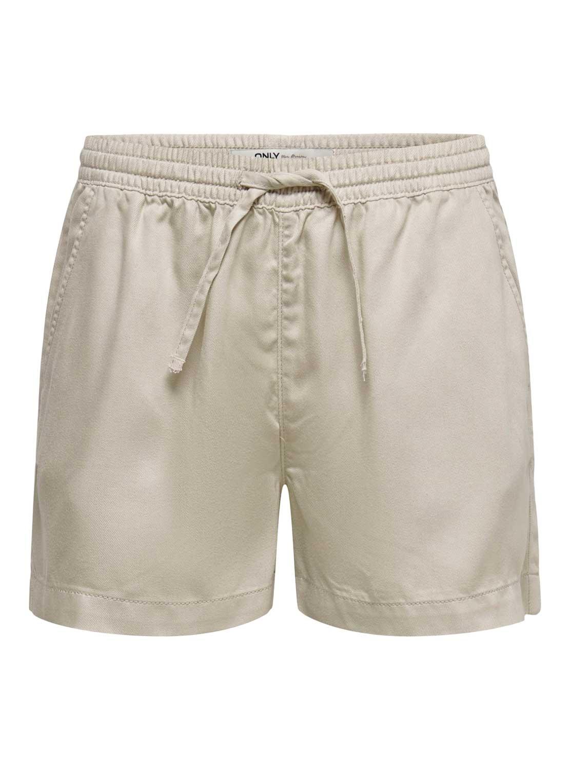 Short Only. Cor bege. Modelo Pema Riga Life. Cintura com borracha e cordão ajustável. Bolsos nas laterais. Solto.