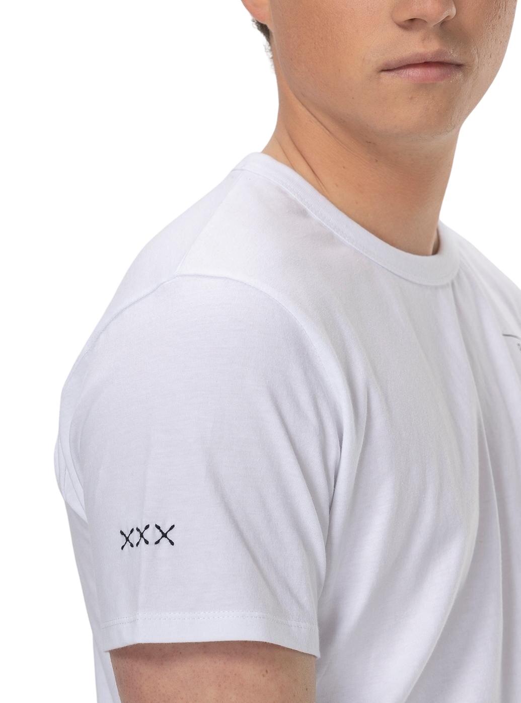 T-Shirt El Pulpo. Cor branca. Padrão Marshmallow. T-Shirt com manga curta e gola redonda. Estampa pequena na lateral do peito. X impresso na manga. Etiqueta na parte inferior.