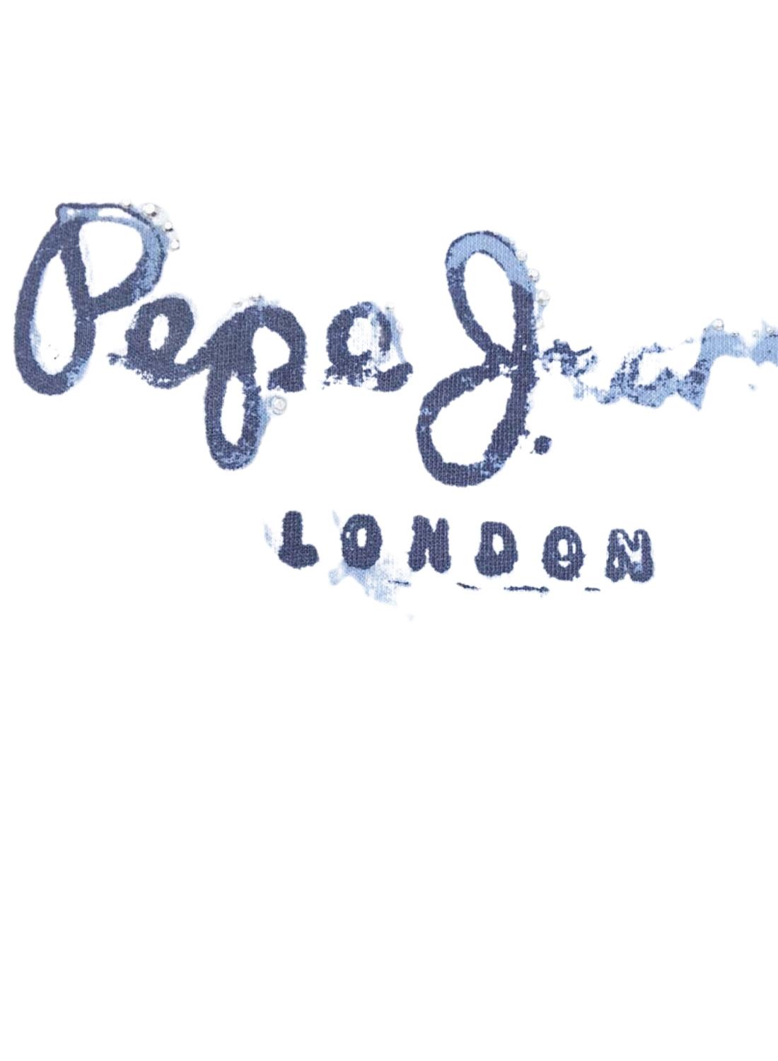 Sweat Pepe Jeans. Modelo Goldie. Cor azul. Manga longo. Pescoço redondo. Printed da marca no parte frontal. Extremidades ranhuradas.