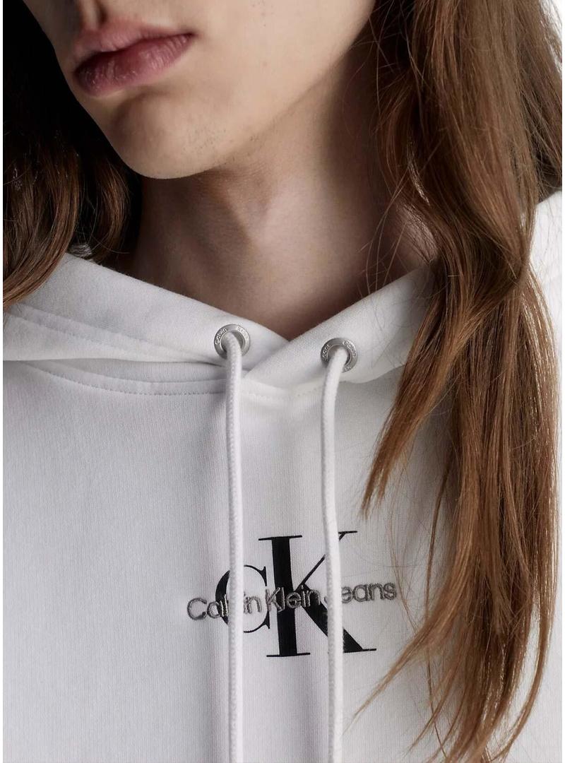 Sweat Calvin Klein. Modelo Logo. Cor branco. Manga longo. Capuz ajustável com cordão. Marca Logo no peito.