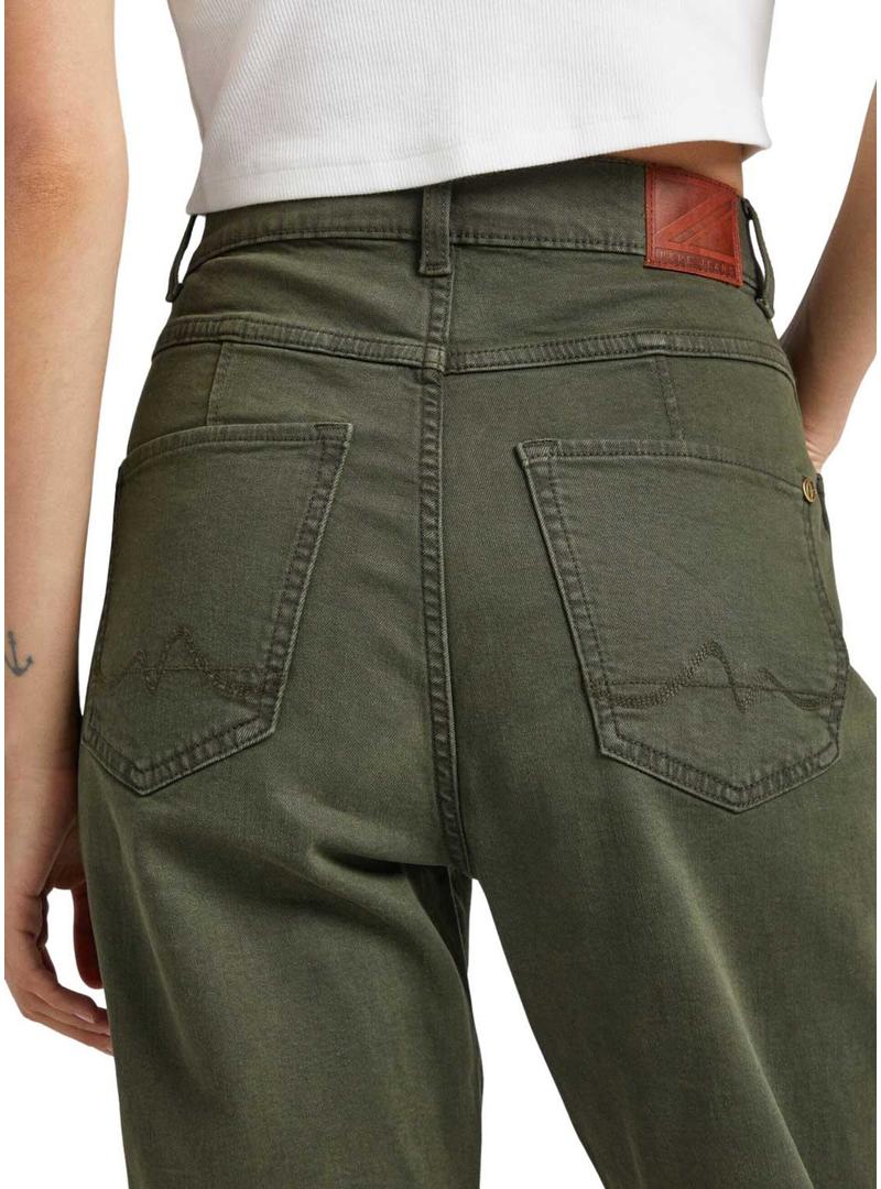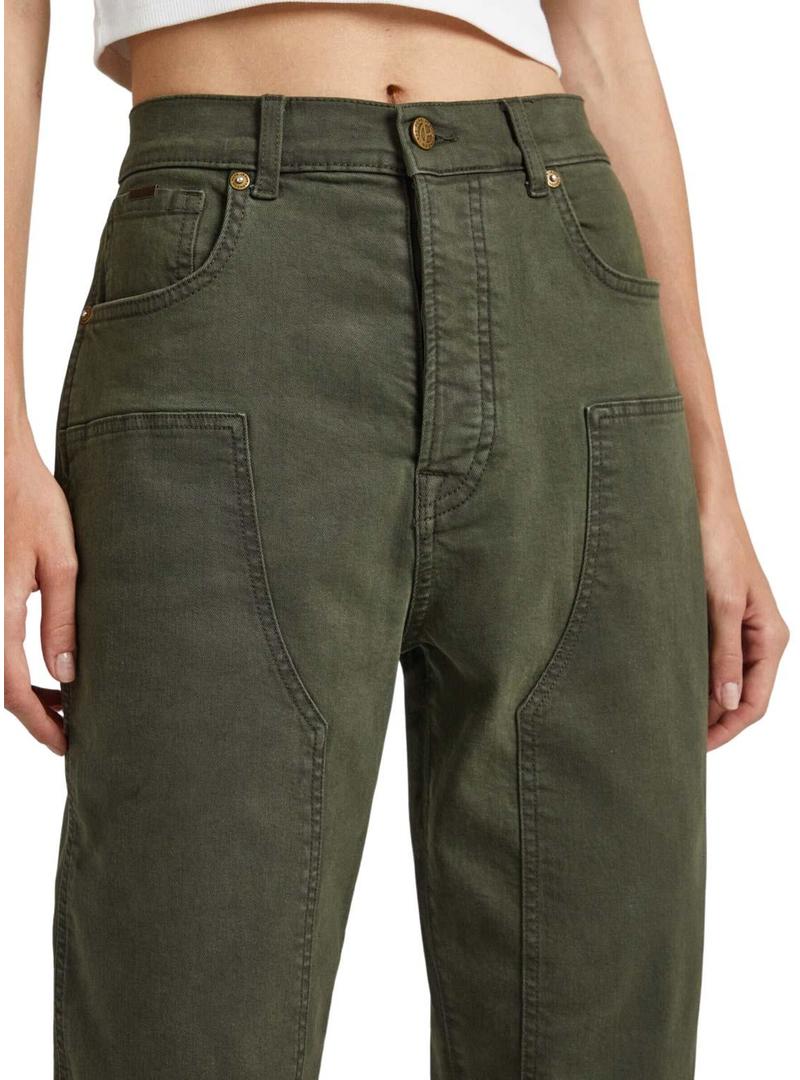 Calças Pepe Jeans. Modelo Celyn Work. Cor verde. 5 bolsos. Fechamento por botão e zíper. High rise. Patch da marca nas costas. perna reta