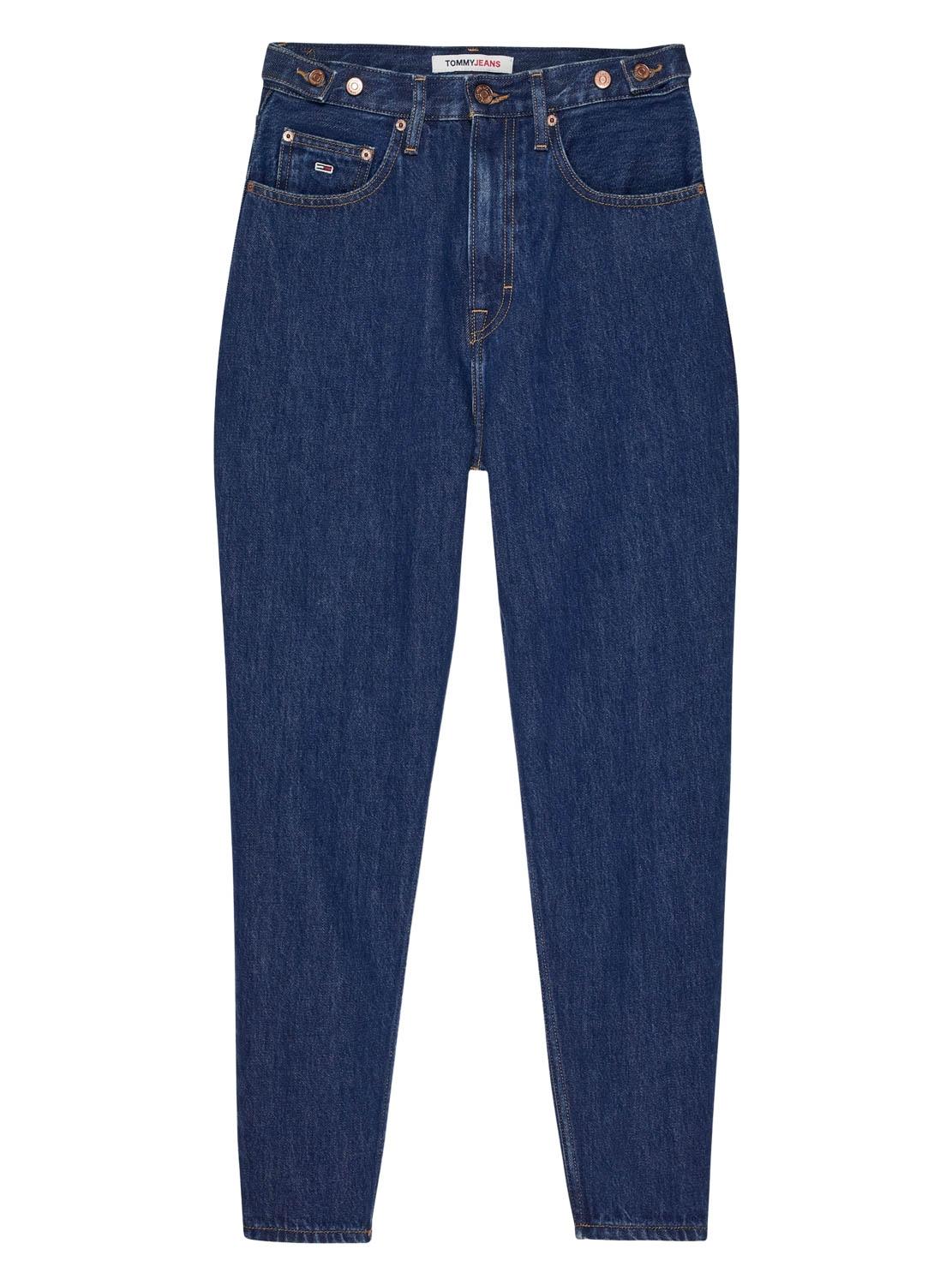 Calças Jeans Tommy Jeans. Modelo Mom. Cor azul. 5 bolsos. Fechamento por zíper e botão. Cintura alta. Patch da marca nas costas.