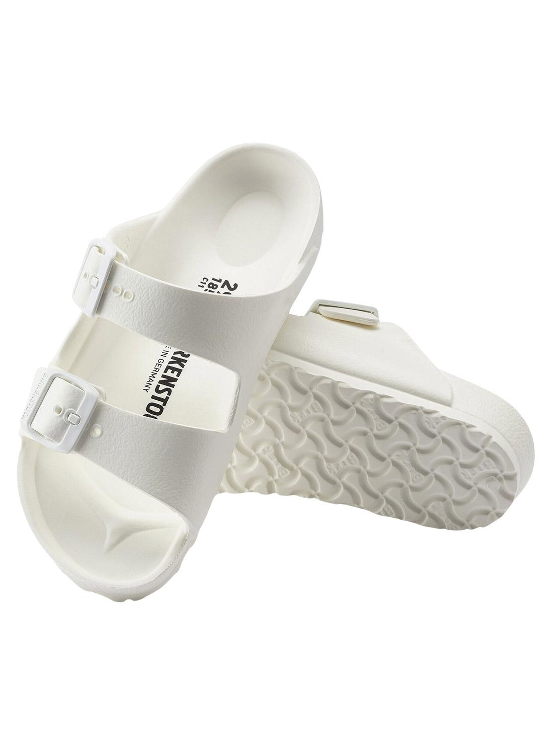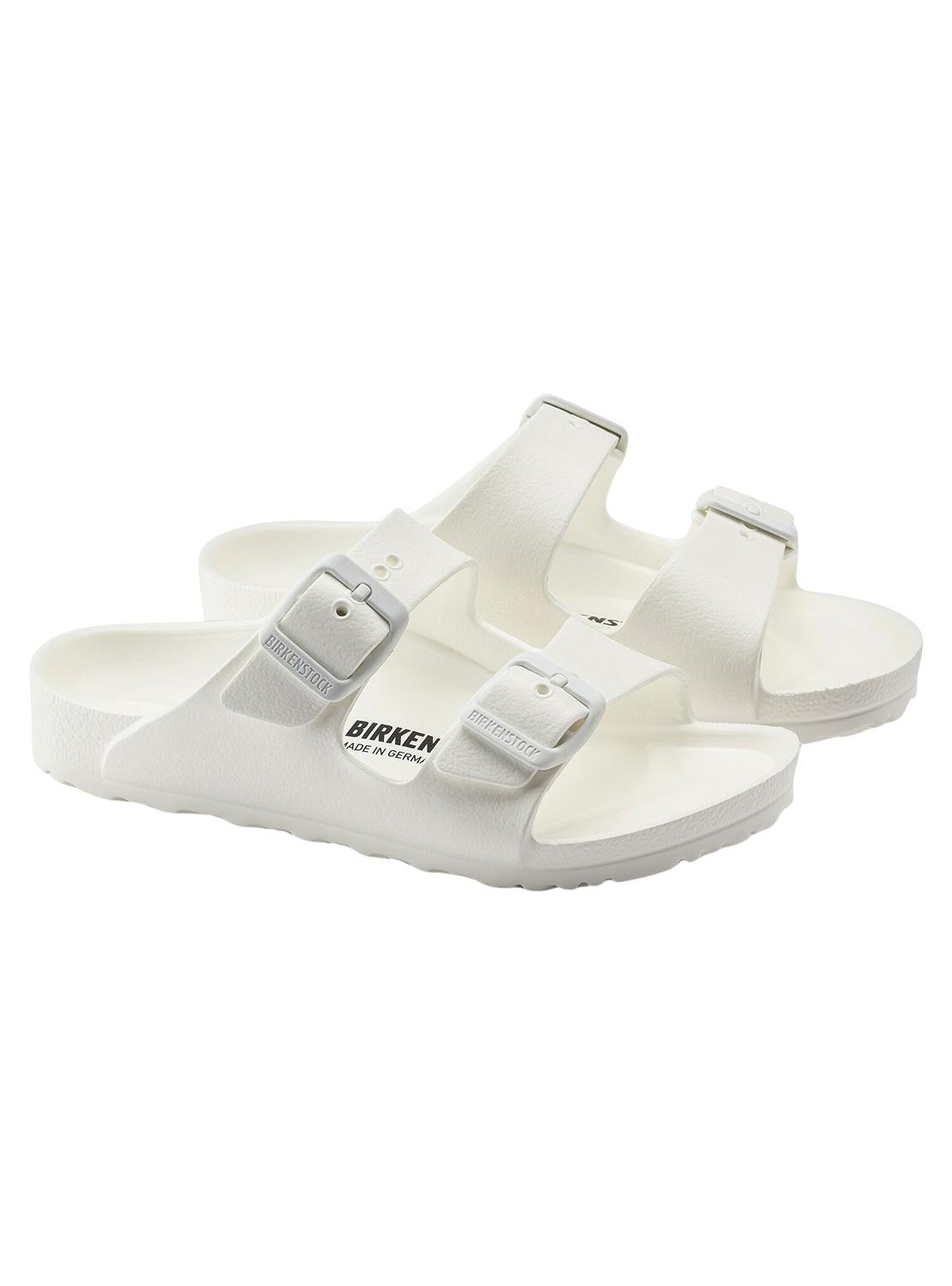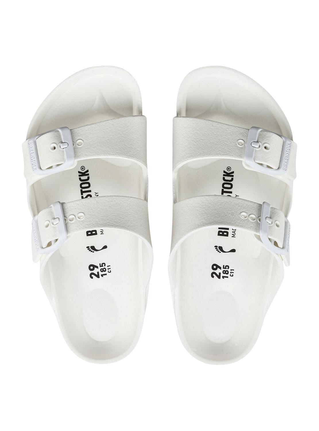 Sandálias Birkenstock. Modelo Arizona EVA. Cor branca. Fivelas de ajuste laterais. Fabricada em borracha. Palmilha anatômica.