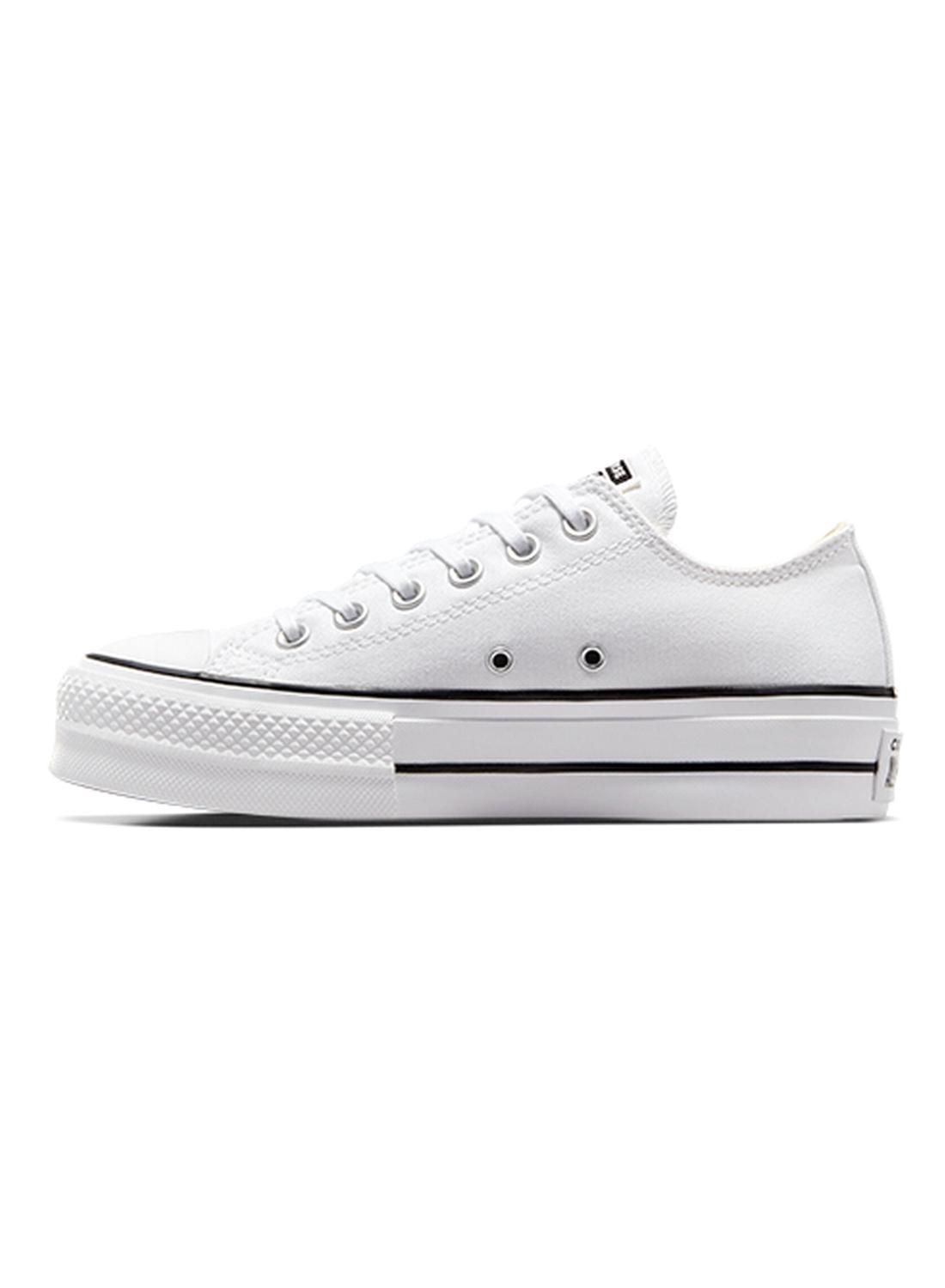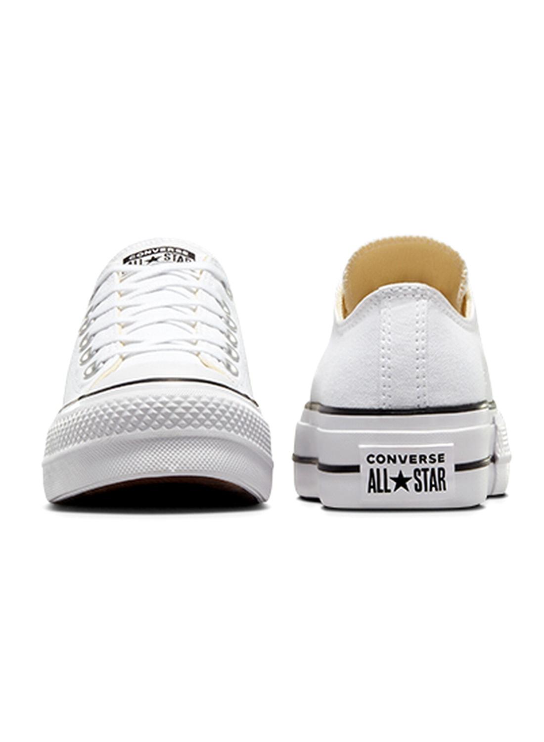 Sapatilhas Converse. Cor branca. Modelo Chuck Taylor All Star Platform Canvas. Parte superior em lona durável. Espuma EVA. Com plataforma. Etiqueta All Star. Logotipo posterior renovado.