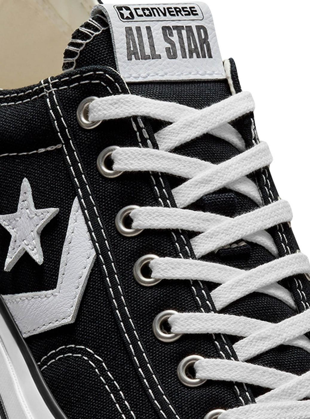Tênis Converse. Modelo Star Player 76. Cor preta. Fechamento com cadarço. Logo lateral. Biqueira de borracha.