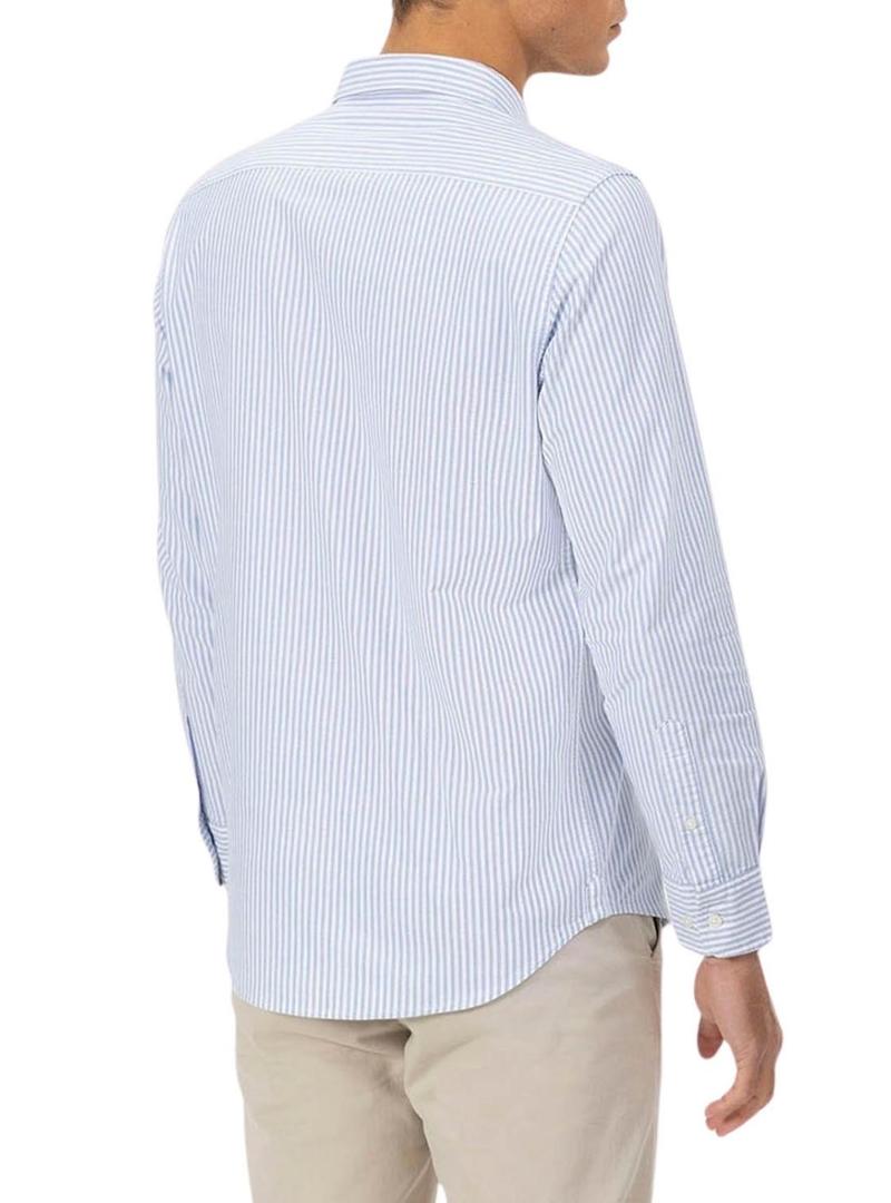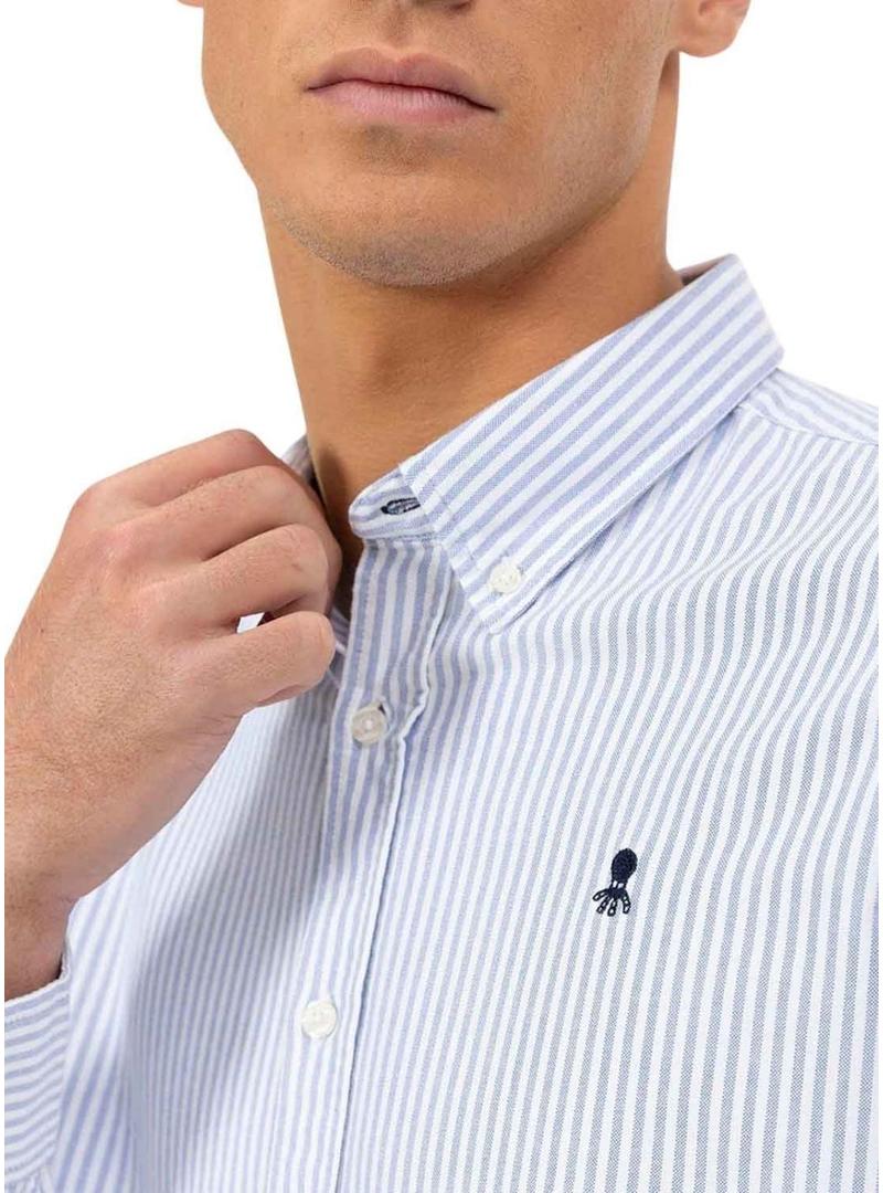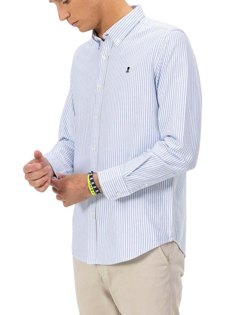 Camisa El Pulpo Oxford listrada branca e azul para homem.