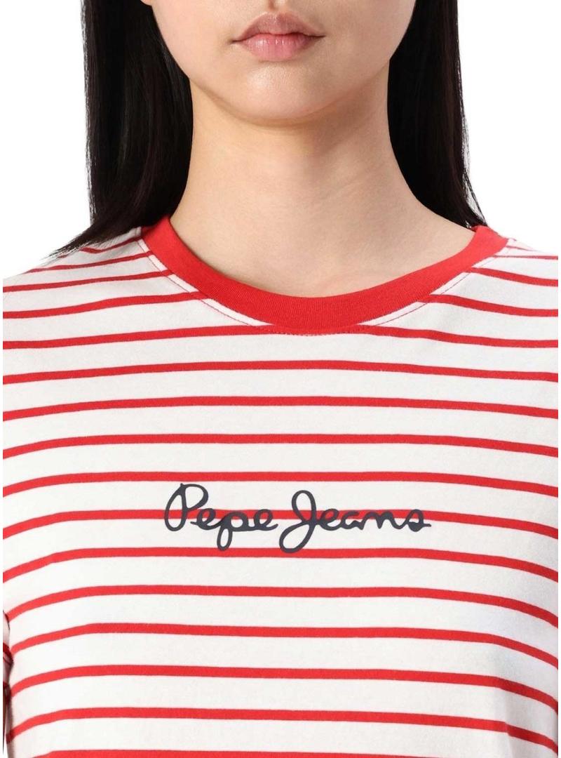 Camiseta Pepe Jeans Elba vermelha e branca para mulher