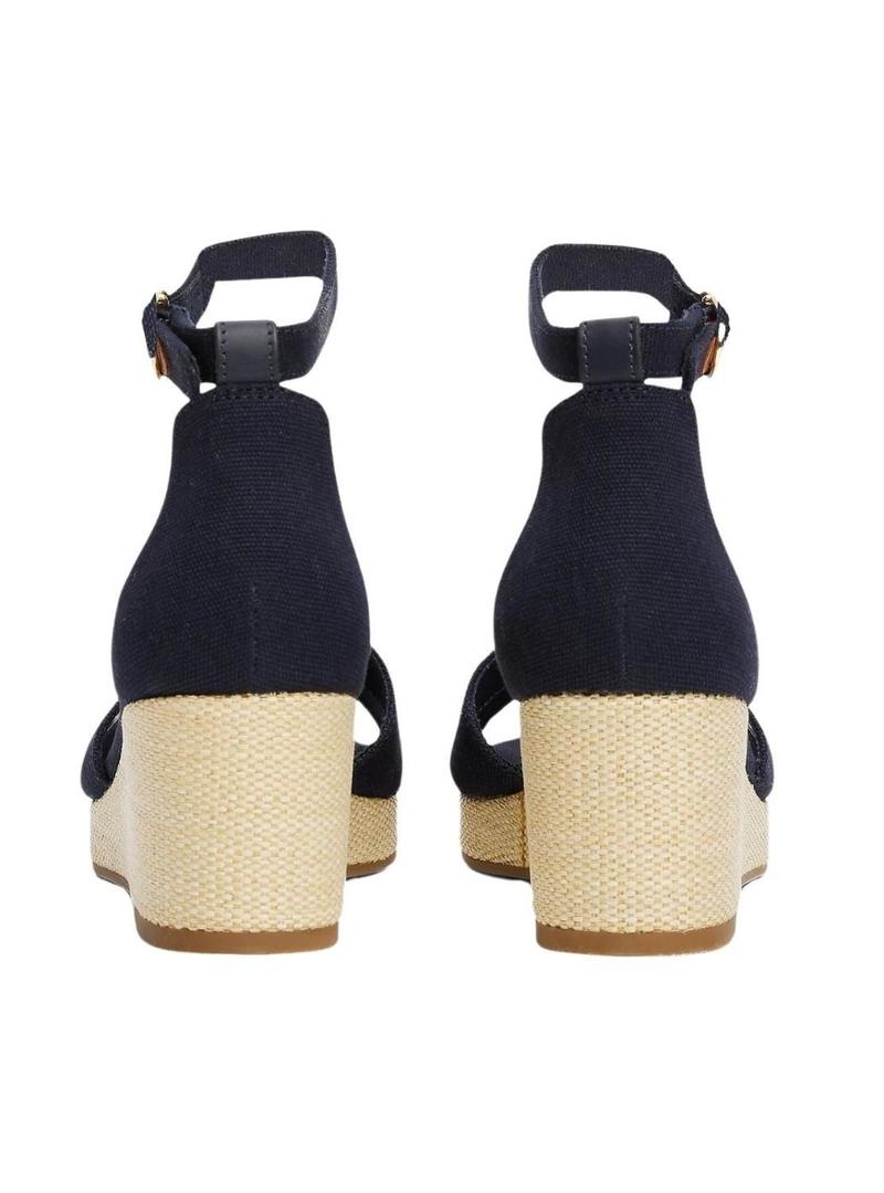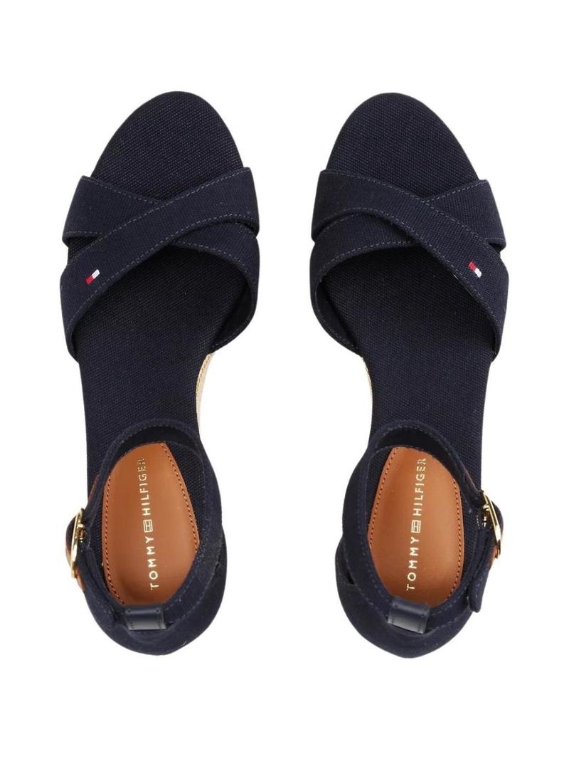 Sandálias Tommy Hilfiger. Modelo Flag Criss. Cor azul marinho. Tiras superiores cruzadas. Logotipo bordado. Sola de borracha. Entressola com efeito natural. Com cunha. Fecho com fivela no tornozelo. Altura da cunha de 6 cm.
