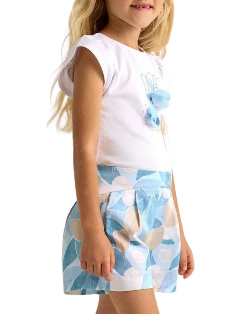 Saia Mayoral estampada em tecido de bambula branca para menina.
