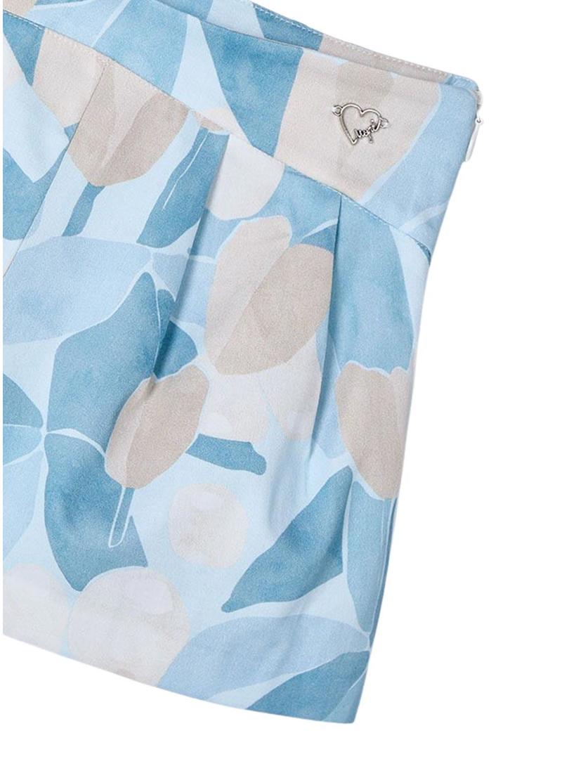 Saia-calça Mayoral. Estampa floral. Cintura alta. Fecho lateral com zíper. Detalhes plissados. Formato curto. Adorno da marca costurado na cintura.