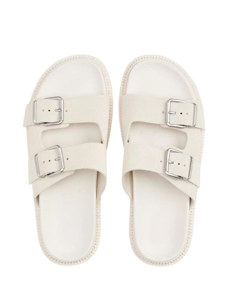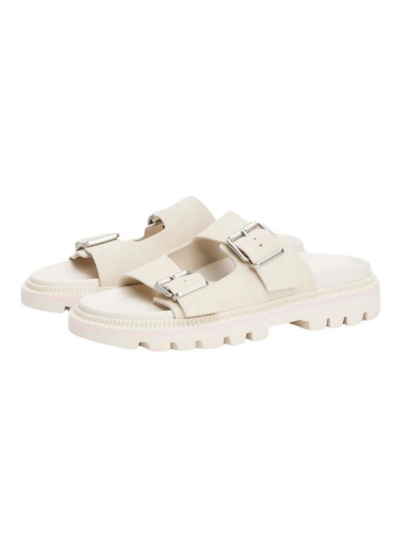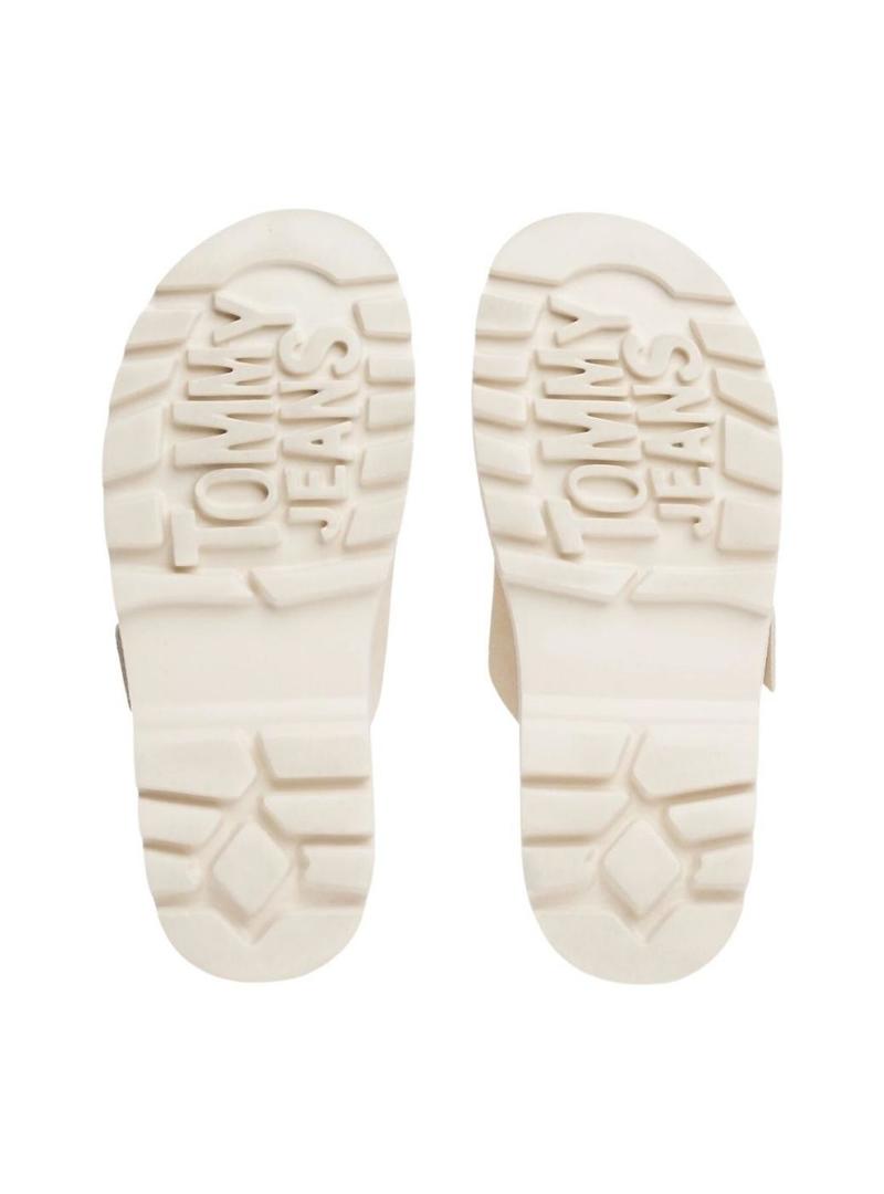 Sandálias Tommy Jeans. Modelo Double Strap. Cor branca. Parte superior em camurça. Dupla correia com fivela metálica. Sola EVA track. Detalhes distintivos da marca.