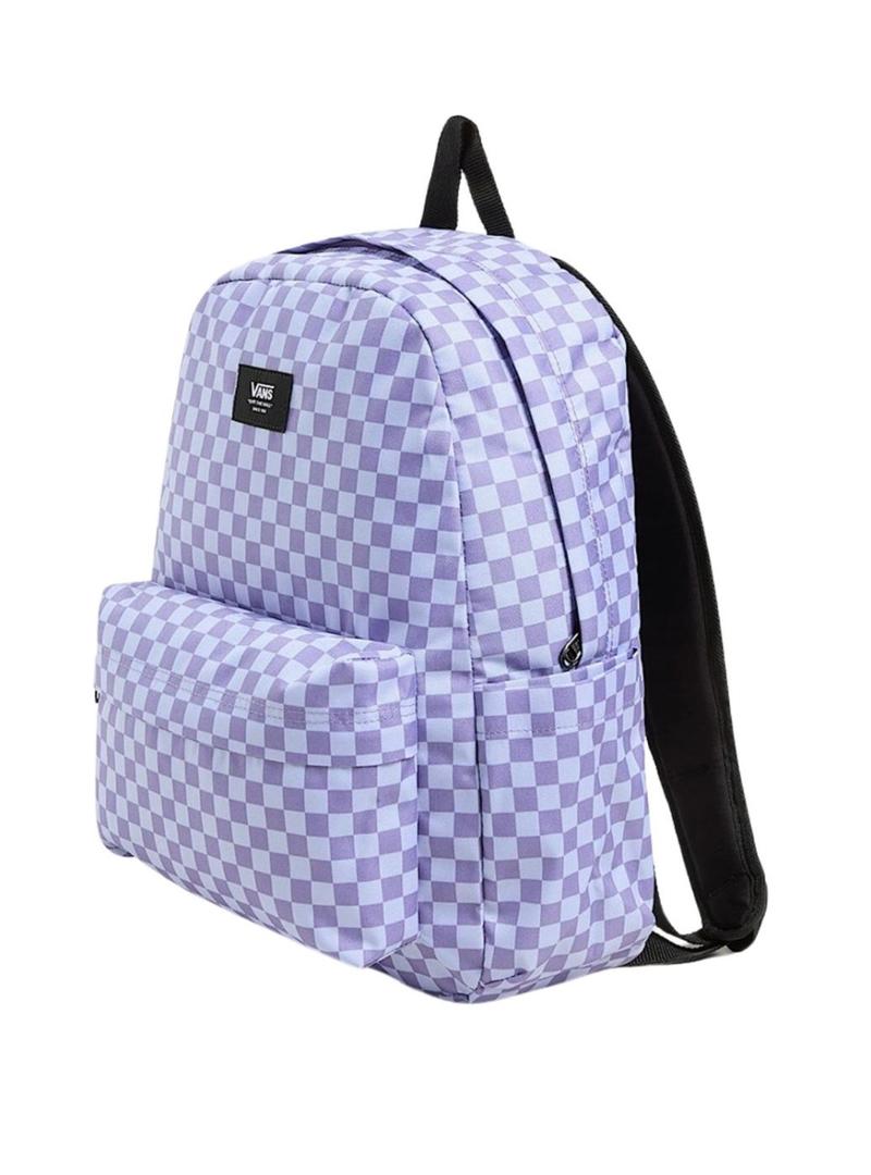 Mochila Vans. Modelo Old Skool Check. Cor lilás. Fecho principal com zíper. Compartimentos laterais. Bolso exterior com zíper. Remendo da marca. Alça superior. Alças ajustáveis e acolchoadas. Capacidade de 22 litros. Medidas: 42,2 x 32,4 x 12,4 cm.