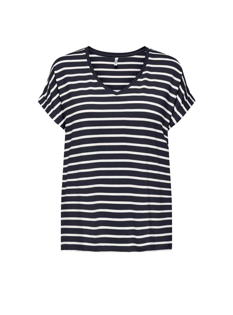 Camiseta Only Moster decote em V listras azul marinho para mulher