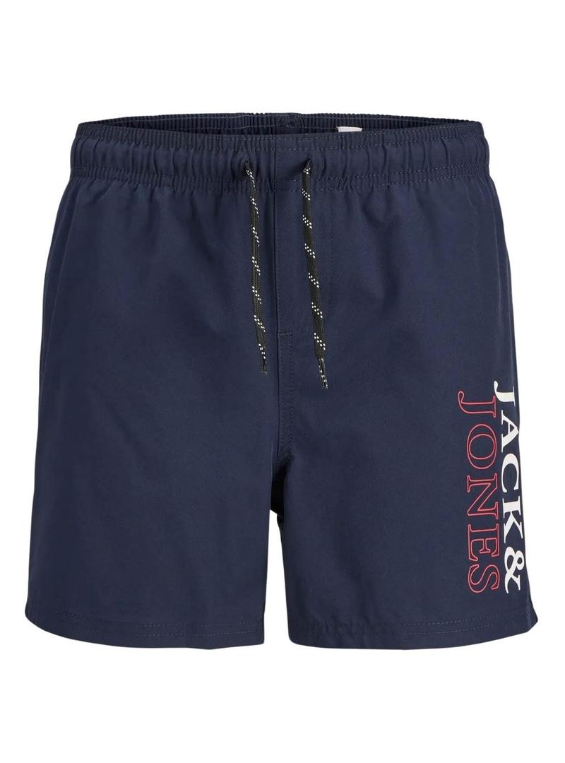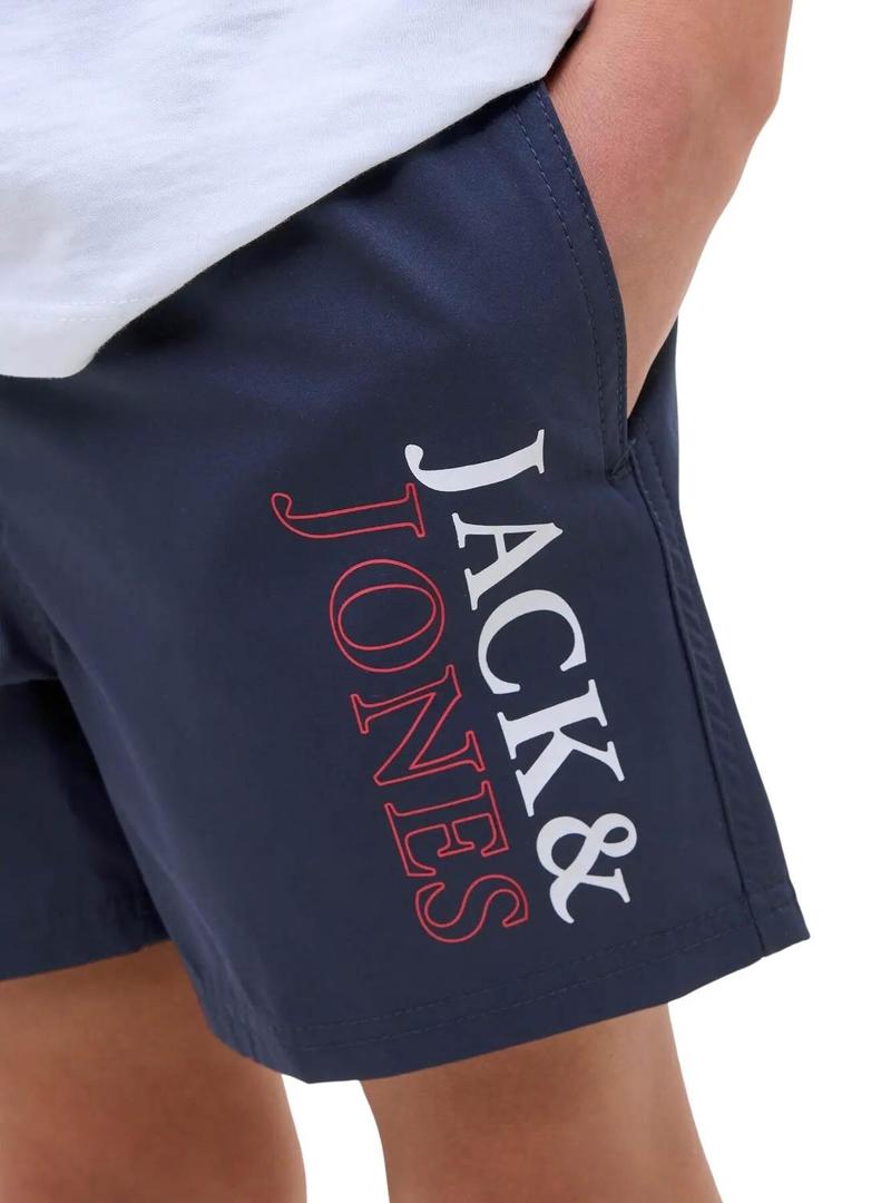 Fato de banho Jack and Jones. Modelo Maui Swim. Cor azul-marinho. Bolsos laterais. Estampa lateral Jack and Jones.