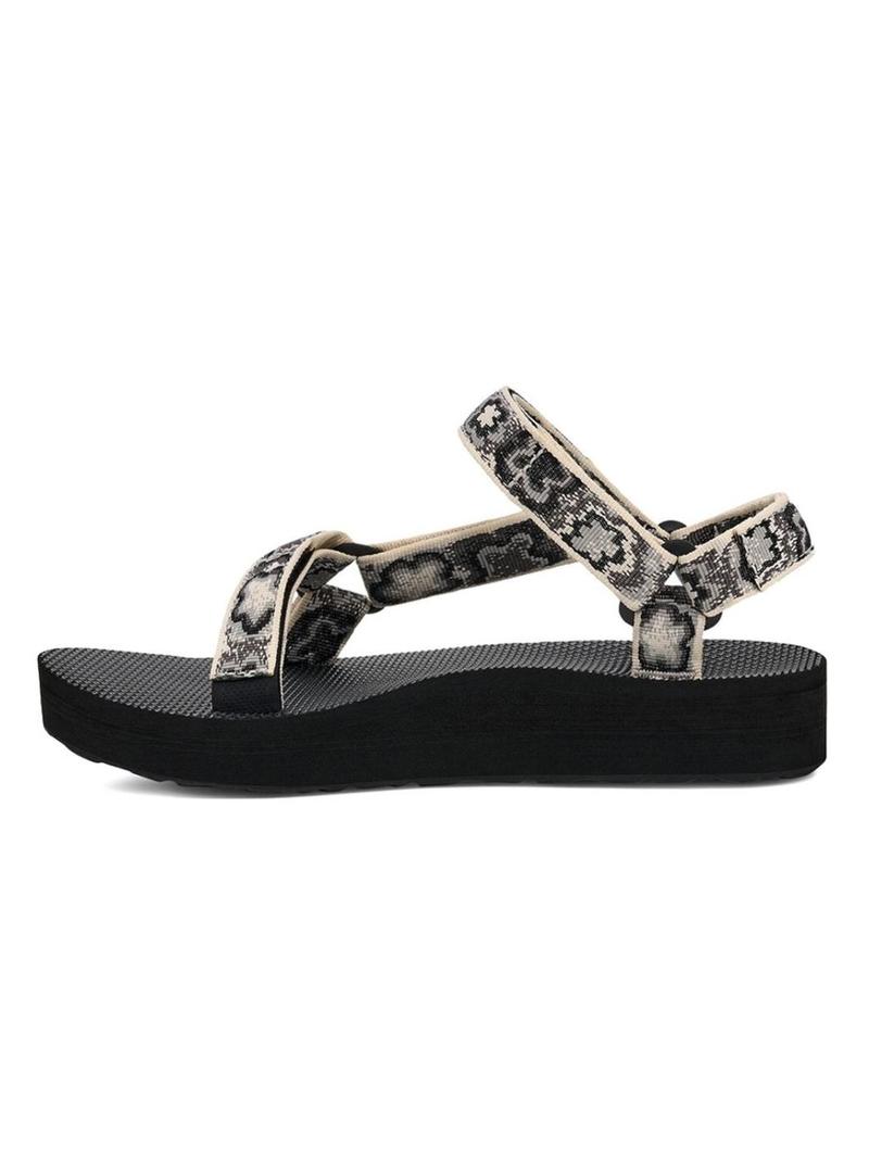 Sandálias Teva. Modelo Midform Universal. Estampa floral tecida nas correias. Ideal para uso diário. Correias de secagem rápida feitas de plástico reciclado com fio de poliéster REPREVE. Sistema de correias universal: vários pontos de ajuste que permitem um ajuste perfeito. Fecho fácil de velcro. Entressola de EVA moldada com copa no calcanhar e arco para maior suporte. Sola de borracha para maior durabilidade e tração. Tratamento anti-odor Life Natural à base de menta. Produto vegano. Altura da plataforma de 3,8 cm. Peso 227 g.