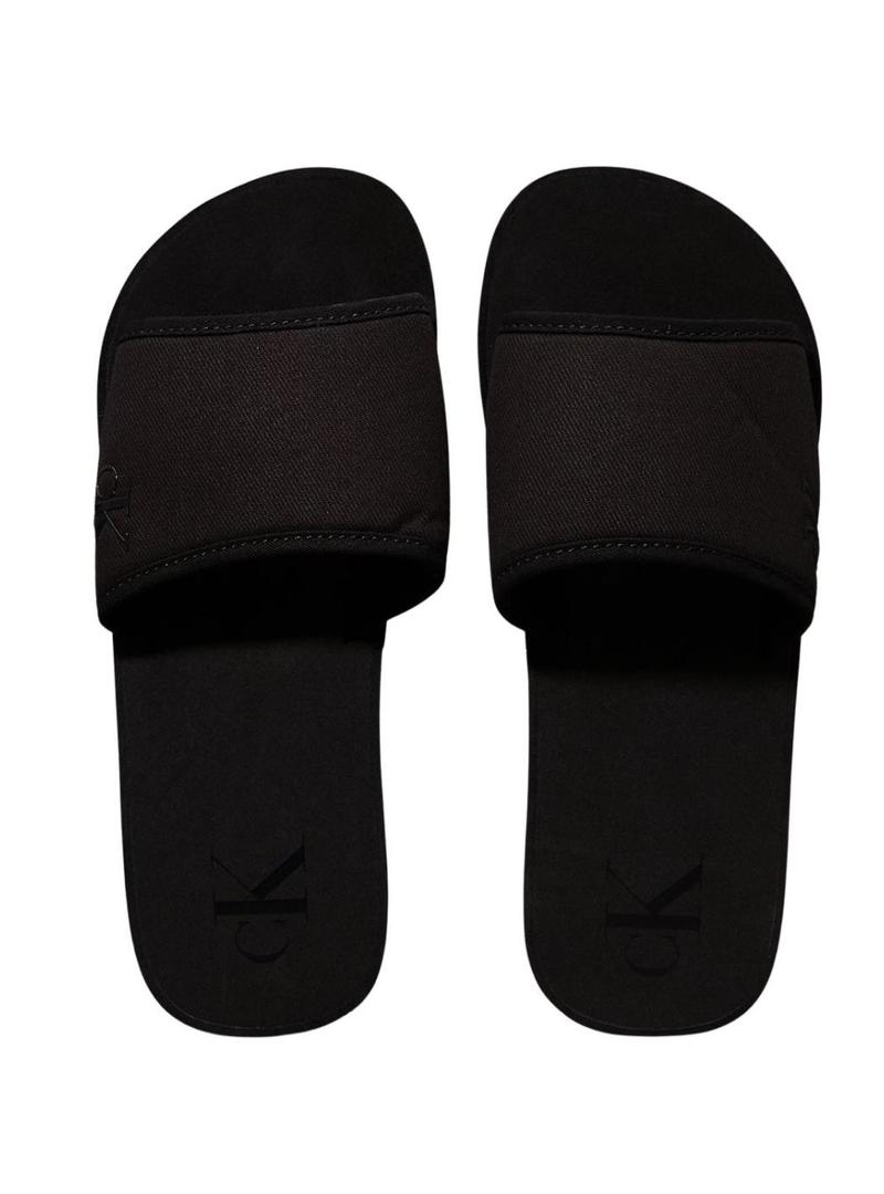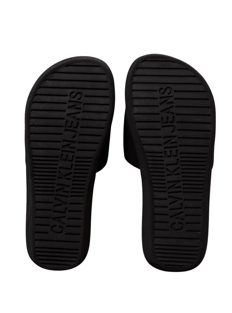 Chinelos Calvin Klein. Com plataforma. Cor preto. Parte superior em algodão reciclado. Tira larga. Forro de sarja de algodão. Sola de EVA. Plataforma de 6 cm. Monograma distintivo da Calvin Klein na tira.