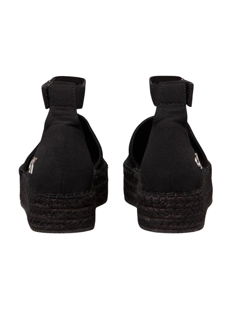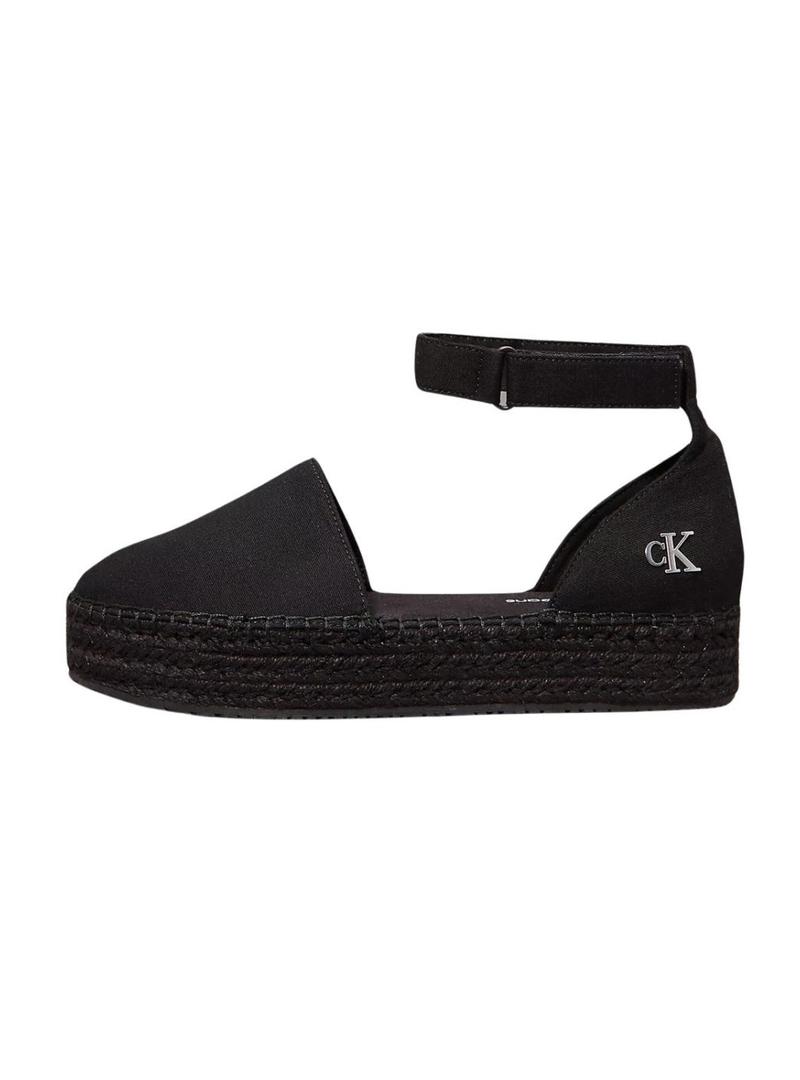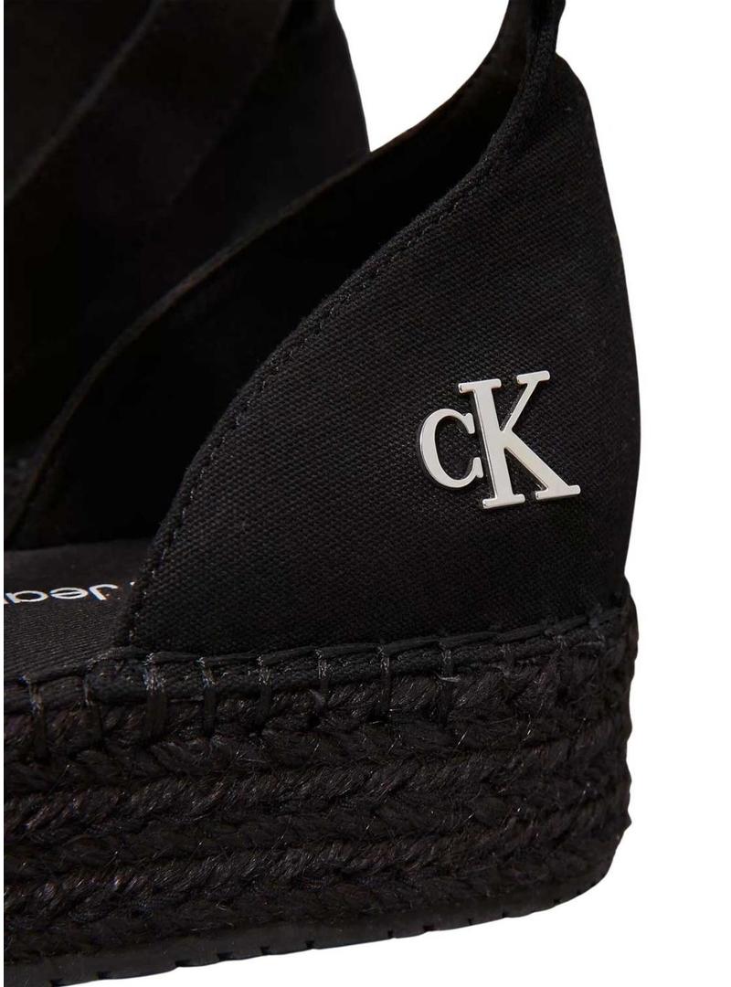 Alpargatas Calvin Klein. Cor preta. Parte superior feita de algodão reciclado. Interior confortável com espuma. Forro de sarja de algodão. Sola de TPR. Plataforma de 1,7 cm. Entressola de esparto. Tira de velcro ajustável no tornozelo. Monograma metálico da Calvin Klein no calcanhar.