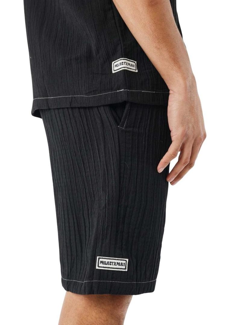 Bermuda Projeto X Paris em tecido preto texturizado para homem.