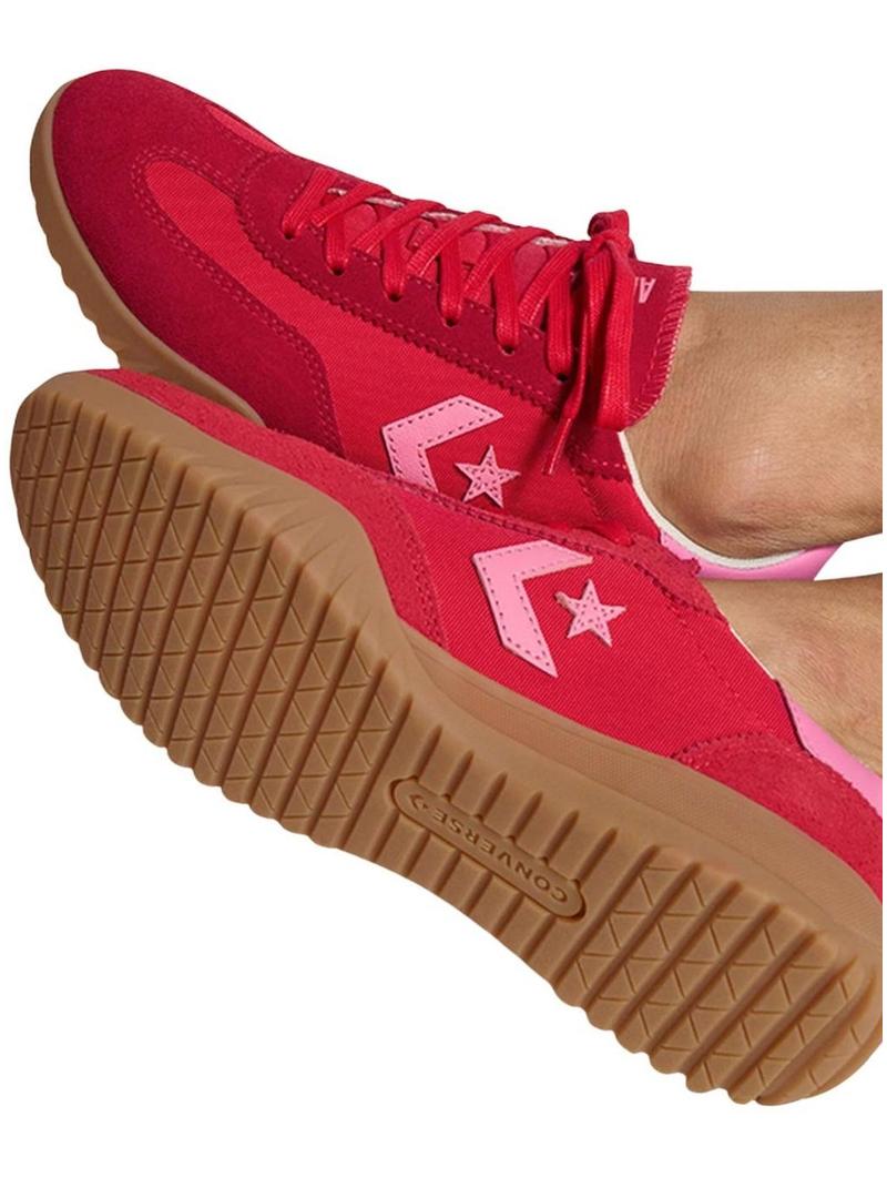 Sapatilhas Converse. Modelo Run Star. Cor rosa fúcsia. Fecho com cordões. Logo lateral em rosa claro. Painéis de camurça e loneta. Sola de borracha em cor natural com relevo.