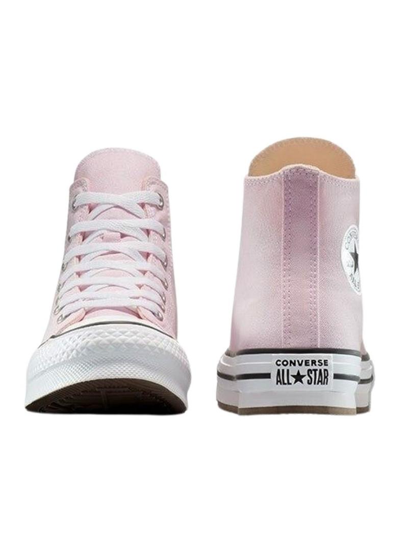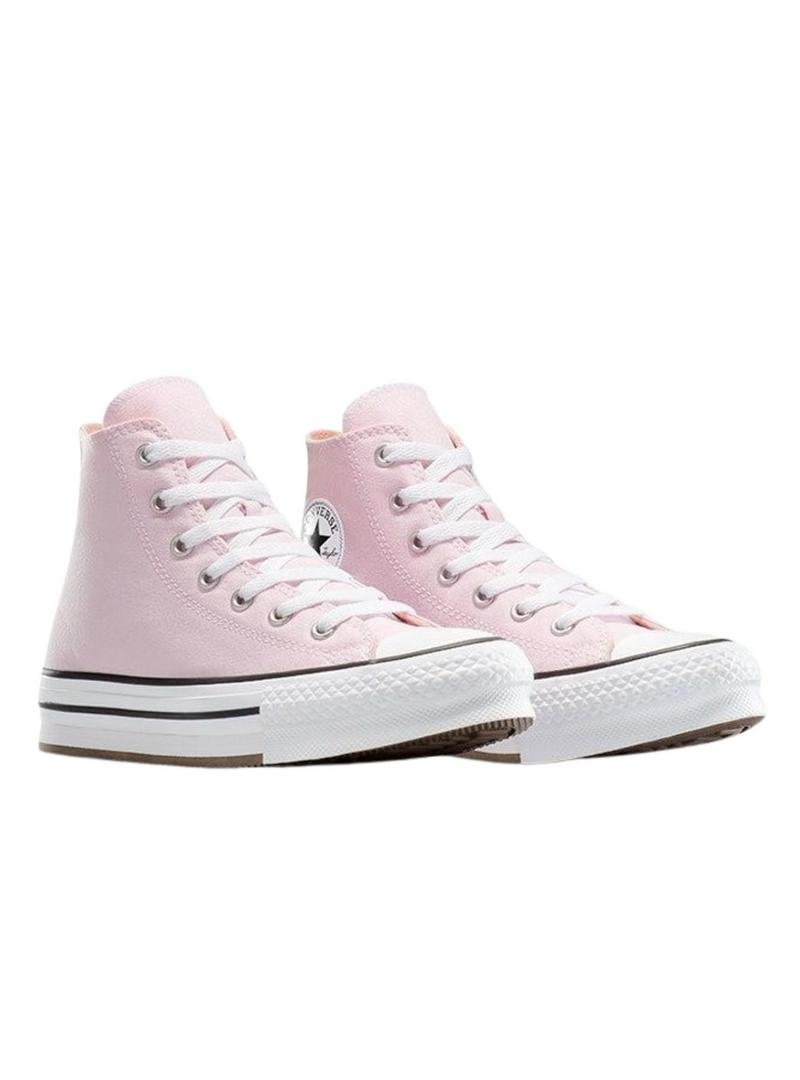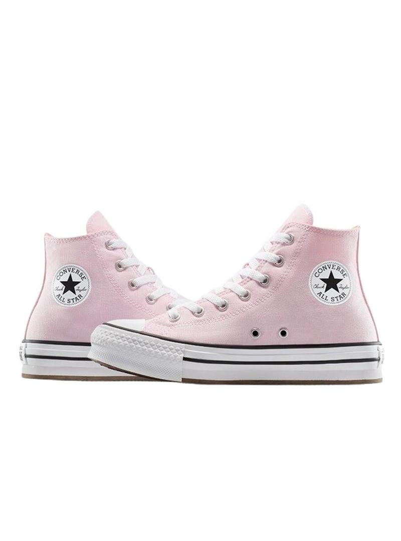 Sneakers Converse. Modelo Chuck Taylor All Star. Cor rosa. Plataforma Eva lift em branco. Fecho com cordões. Parte superior de lona. Sola de borracha. Logo lateral. Cano alto.
