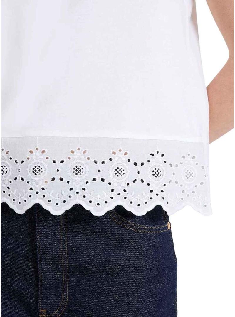 Camiseta Naf Naf. Modelo Alex. Cor branca. Manga curta. Corte reto. Gola redonda. Bordado inglês na parte inferior. Cor branca.