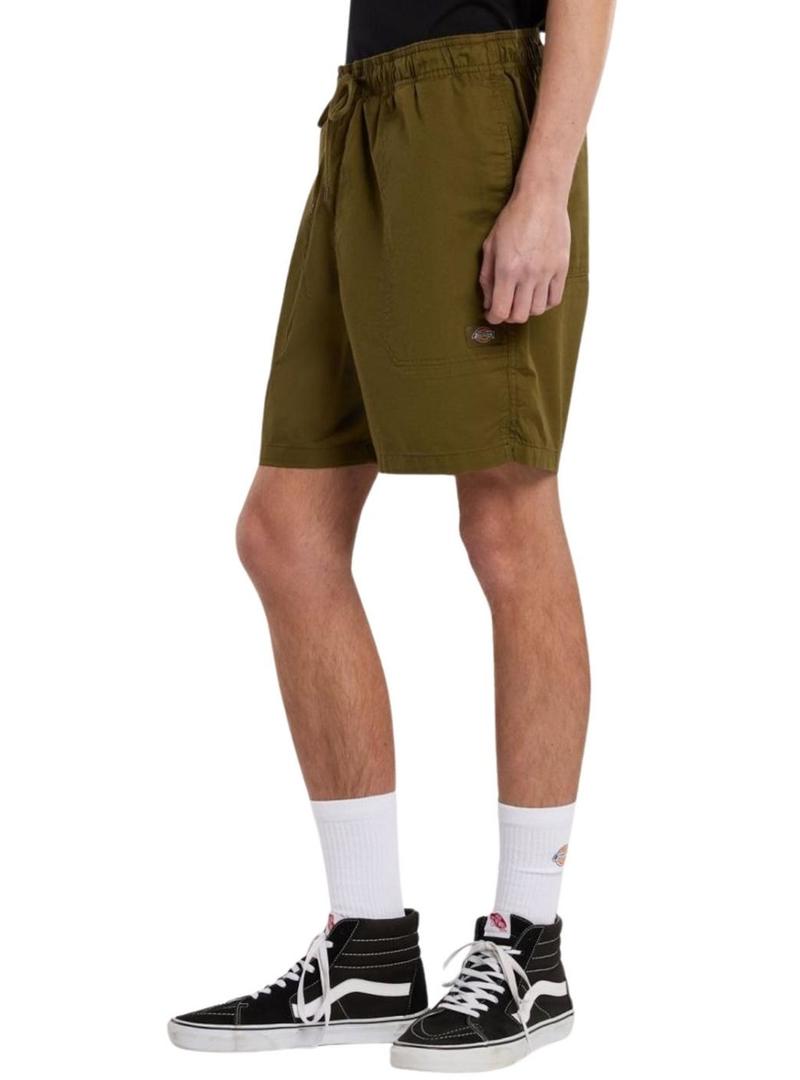 Bermudas Dickies. Modelo Pelican. Cor verde. Cintura elástica com cordão. Bolsos laterais. Bolsos traseiros com aba. Etiqueta da marca. Ajuste regular. Estilo básico.