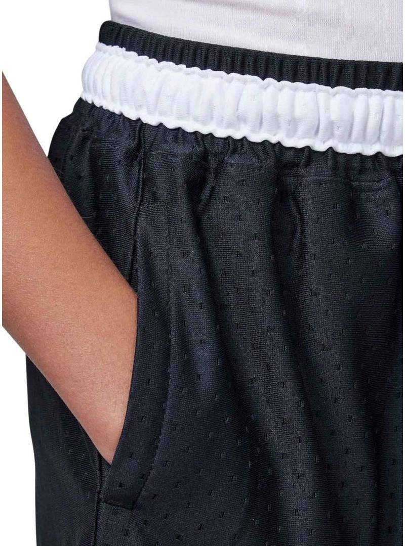 Bermudas Jordan. Modelo Diamond. Cor preta e branca. Cintura elástica com cordão. Comprimento até os joelhos. Logo lateral. Ajuste folgado.