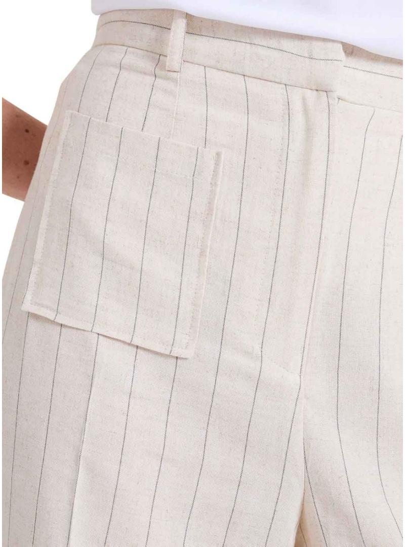 Calças Naf Naf risca diplomática bege para mulher