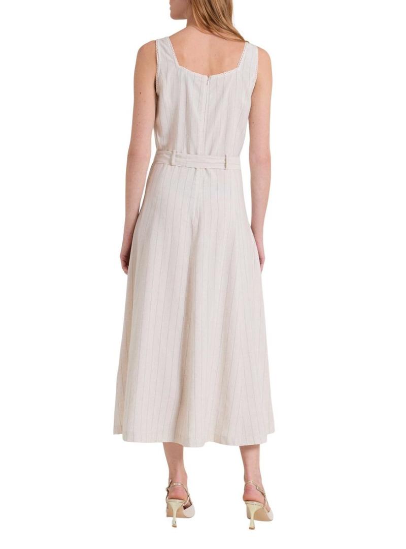 Vestido Naf Naf às riscas diplomáticas bege para mulher.