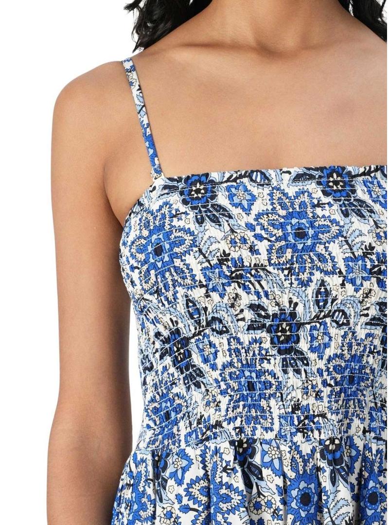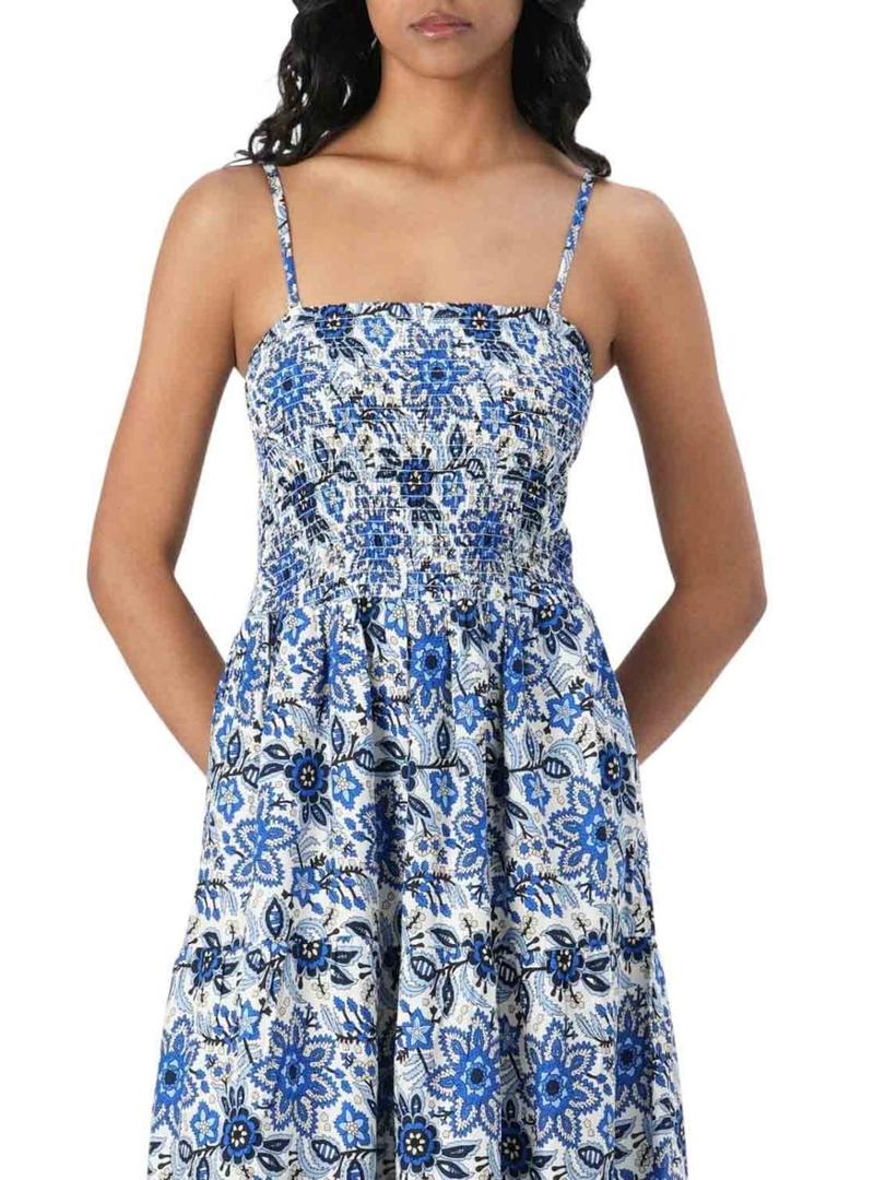 Vestido Only. Modelo Zelina. Cor azul. Estampa de flores. Alças finas ajustáveis. Ajustado no peito. Comprimento midi. Saia solta. Alças removíveis. Pode ser convertido em decote ombro a ombro.