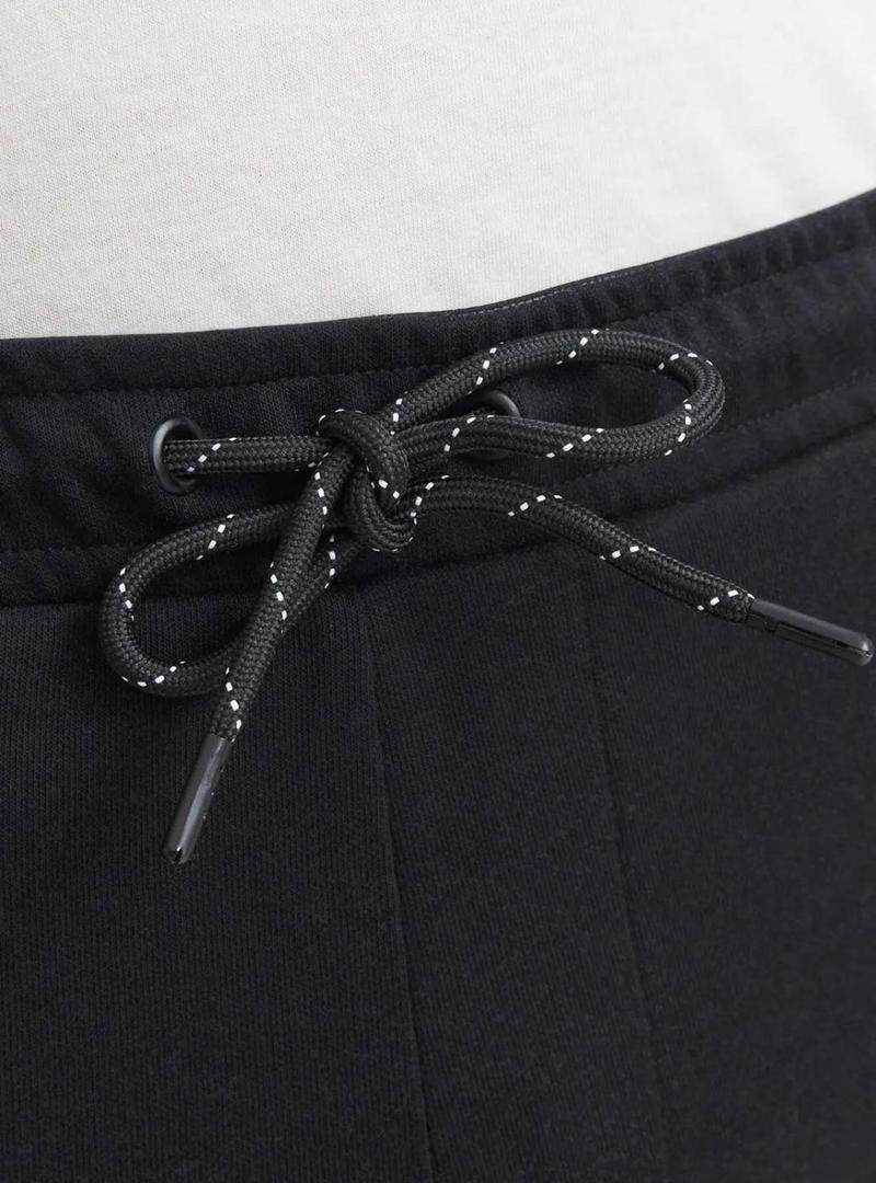 Bermudas Jack and Jones. Modelo Gordon. Cor preta. Cintura elástica com cordão. Bolsos laterais com fecho de zíper. Patch da marca na lateral. Tecido de algodão macio.