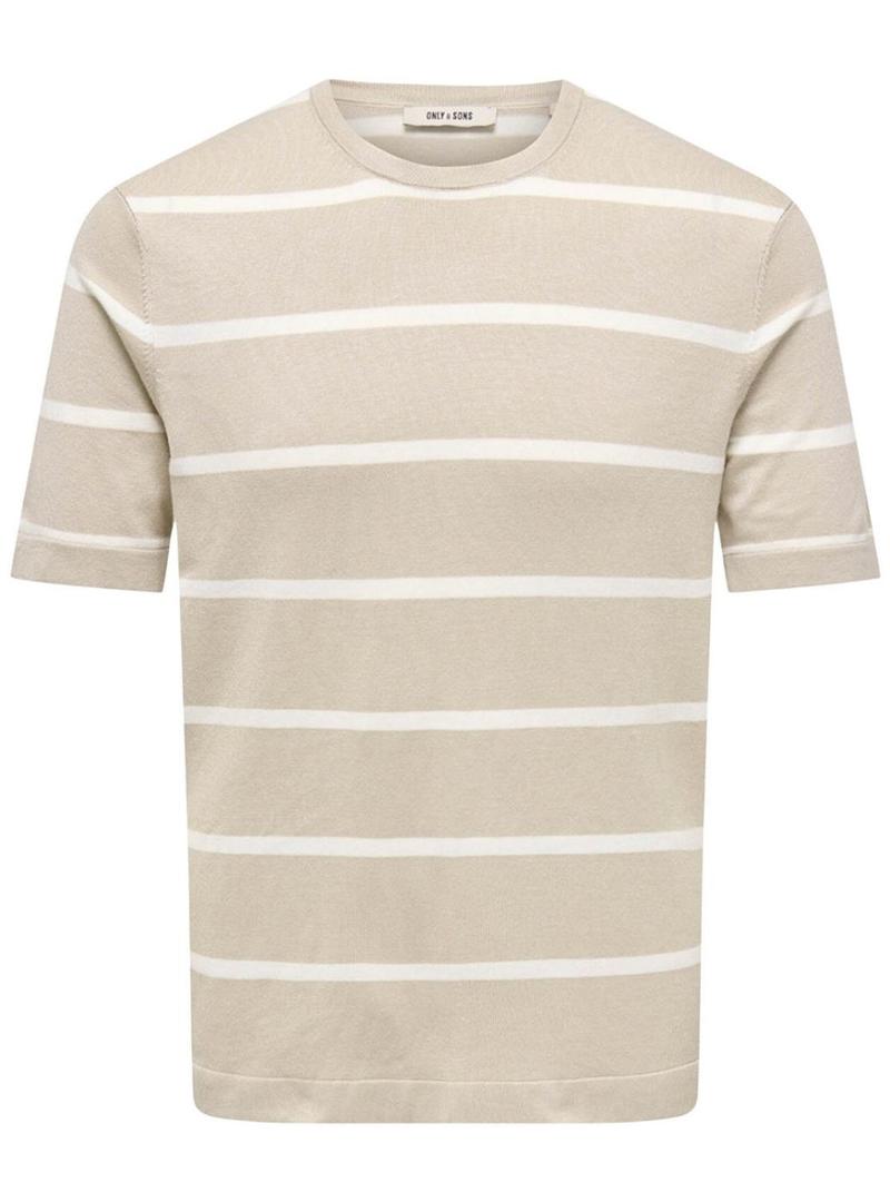 Camiseta Only and Sons. Modelo Wyler listras. Cor bege. Gola redonda. Manga curta. Corte ajustado. Extremidades caneladas. Tecido de malha.