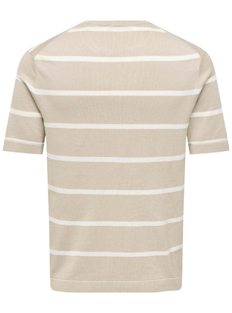 Camiseta Only and Sons Wyler listrada bege para homem.