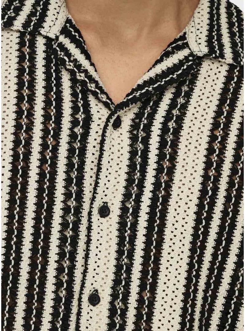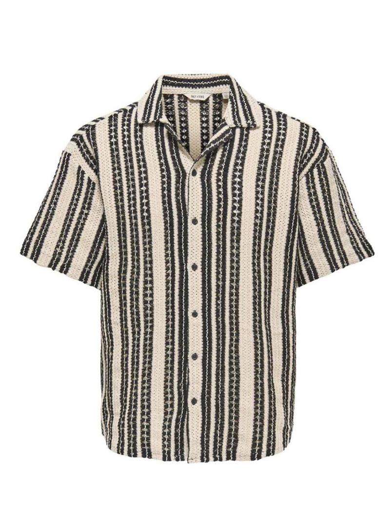 Camisa Only and Sons Dani de crochê bege para homem.