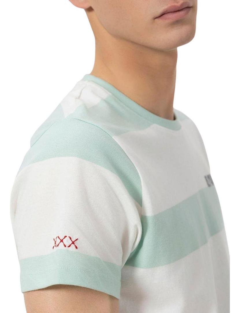 Camiseta El Pulpo Listras turquesa e branca para homem