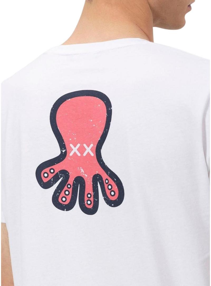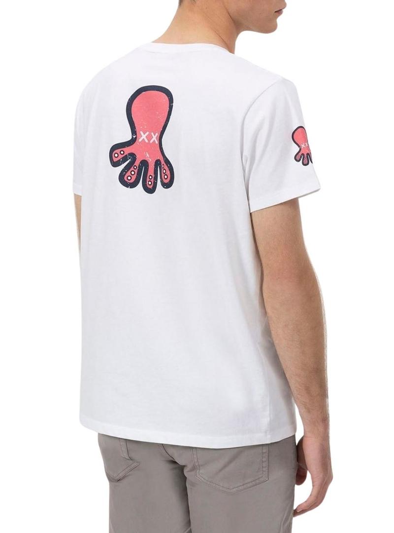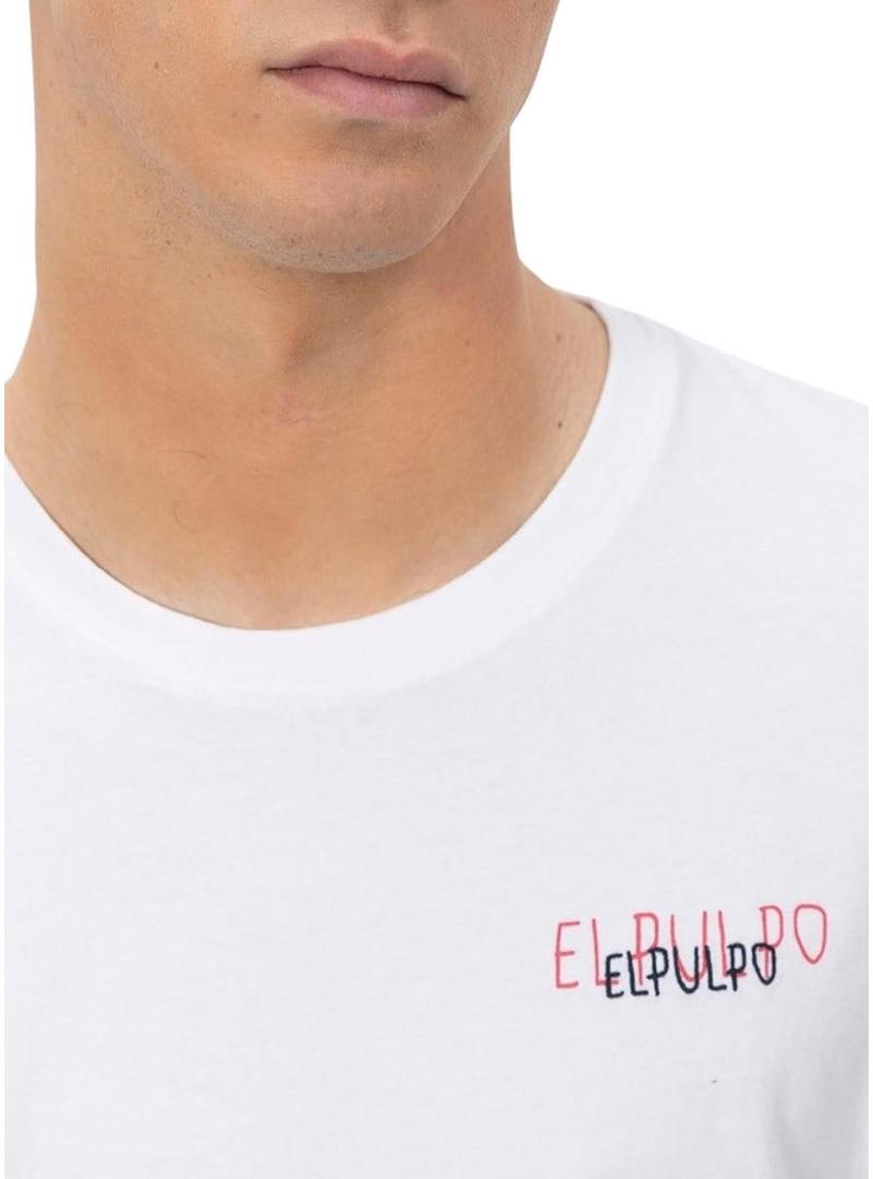 Camiseta El Pulpo. Modelo Triplelogo. Cor branca. Gola redonda. Ajuste regular. Manga curta. Marca estampada no peito. Logo estampado nas mangas e nas costas. Detalhes em fúcsia.