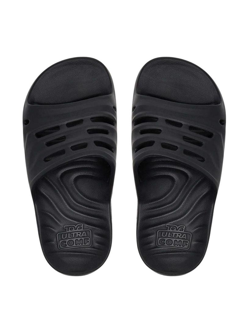 Chinelos Teva. Modelo Apretrail. Cor preto. Palmilha de espuma ULTRA-COMF. Sola superior texturizada para uma melhor circulação de ar. Tacos de borracha na sola exterior para uma boa aderência. Ideal para depois de caminhadas e trekking. Orifícios que permitem prender nas mochilas. Muito leves.