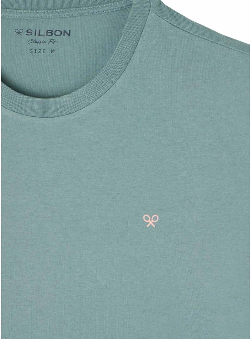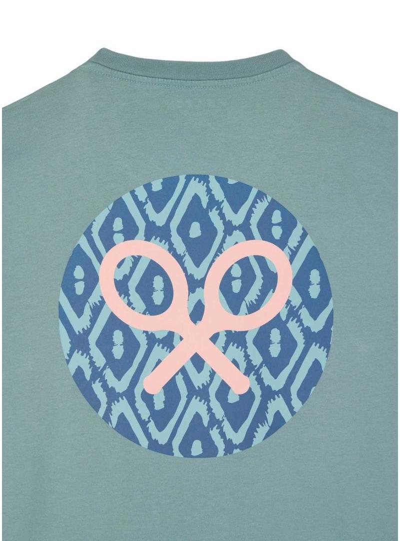Camiseta Silbon. Modelo Losangos. Cor turquesa. Gola redonda. Manga curta. Logo bordado no peito. Logo estampado nas costas com detalhes étnicos em azul e rosa. Ajuste regular.